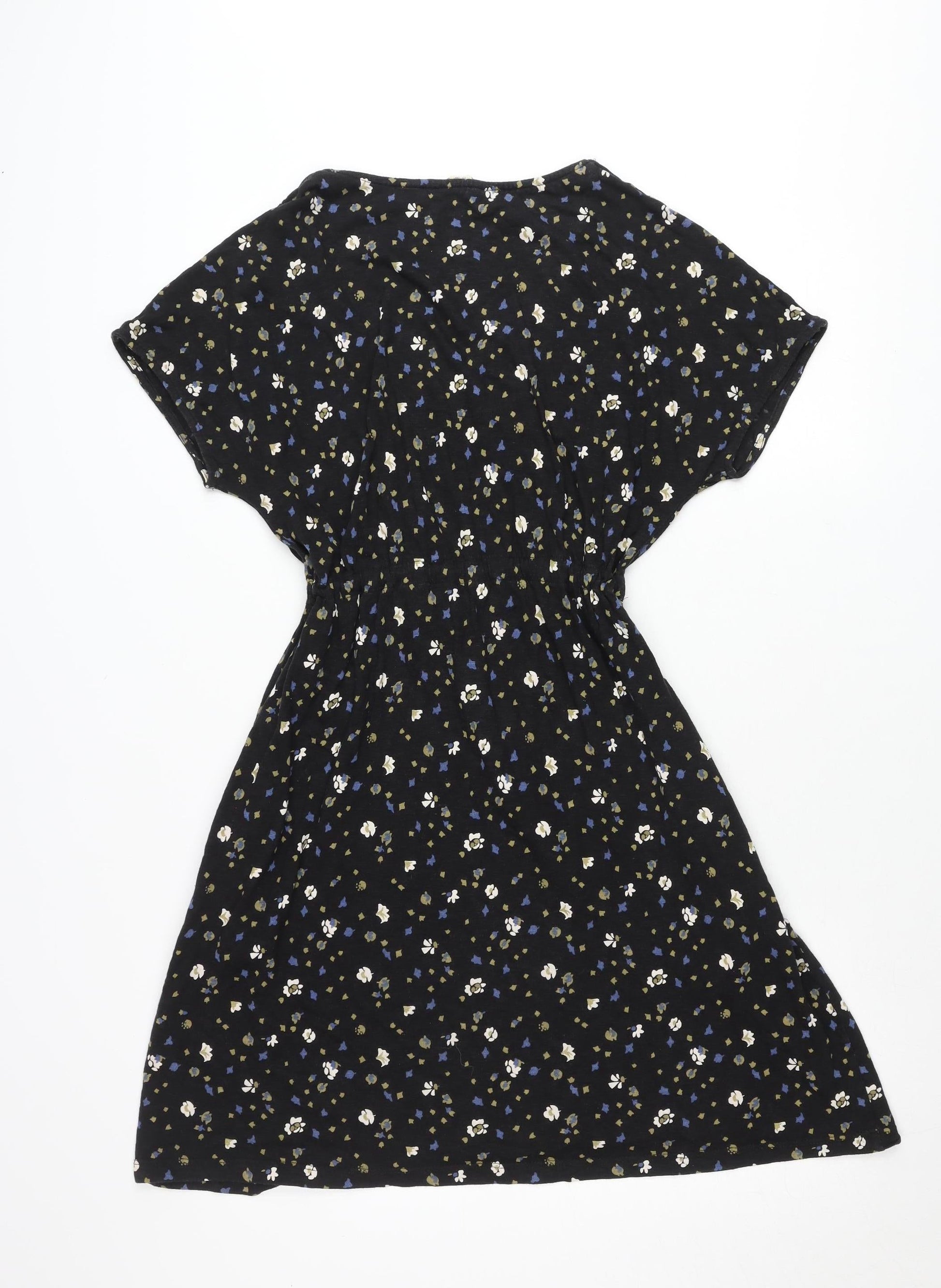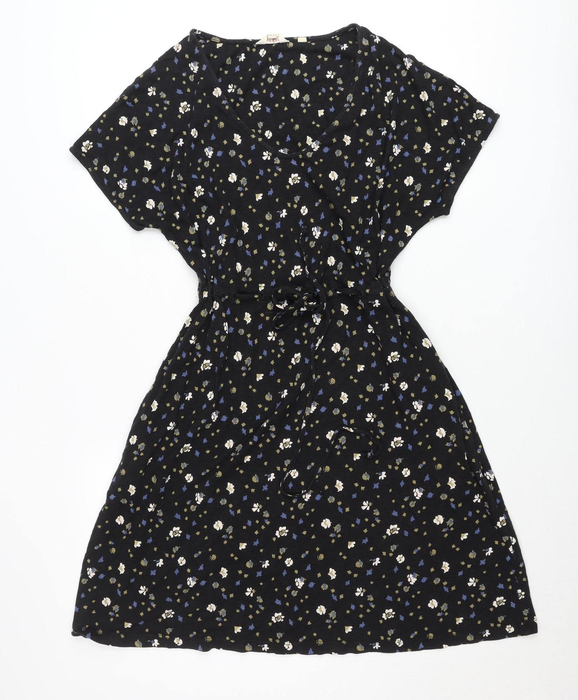 Fat Face Women’s Black Floral Fit & Flare V-Neck Dress Size 8
