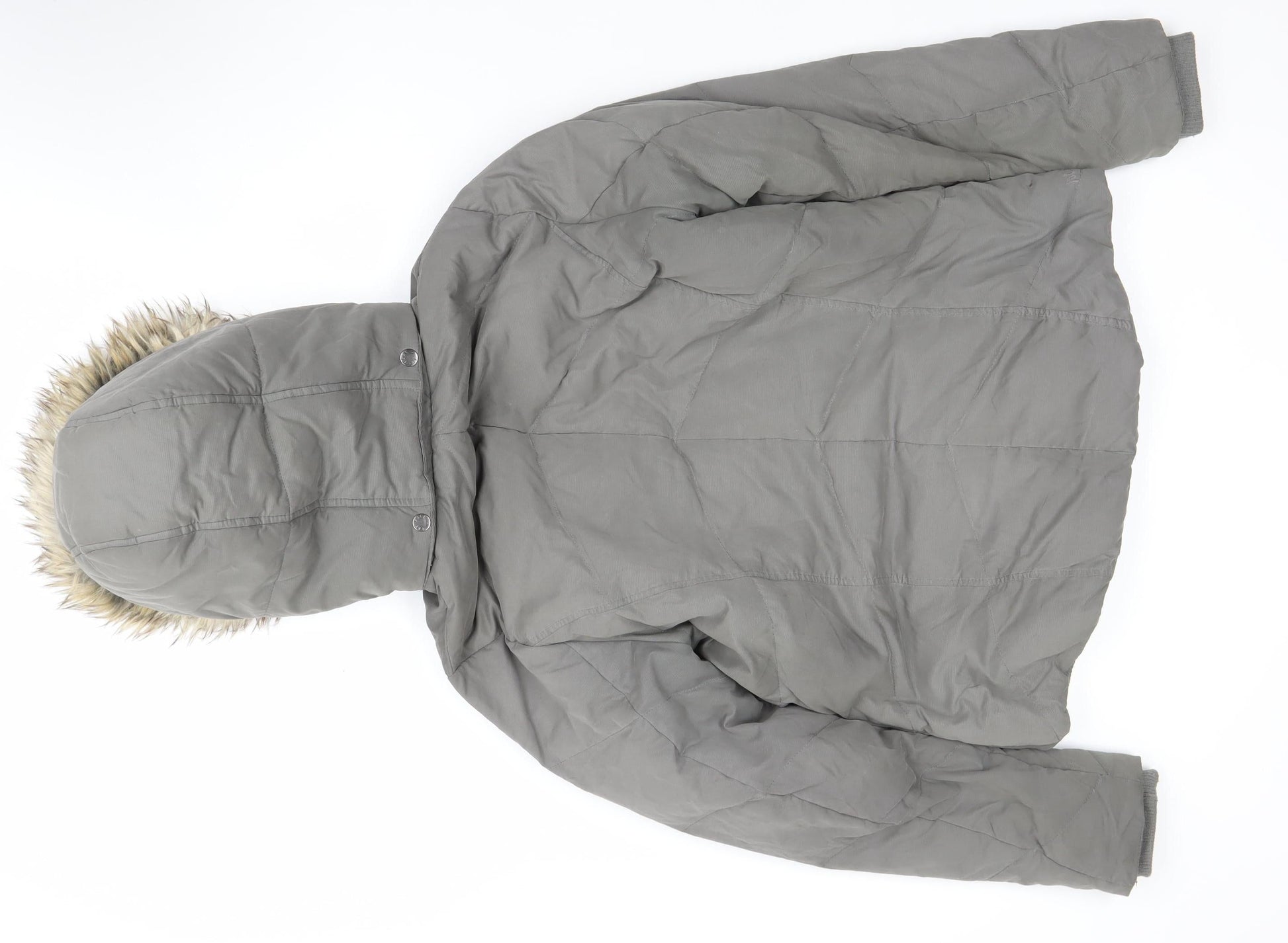 Fat Face Women’s Grey Faux Fur Hooded Parka Coat Size 14