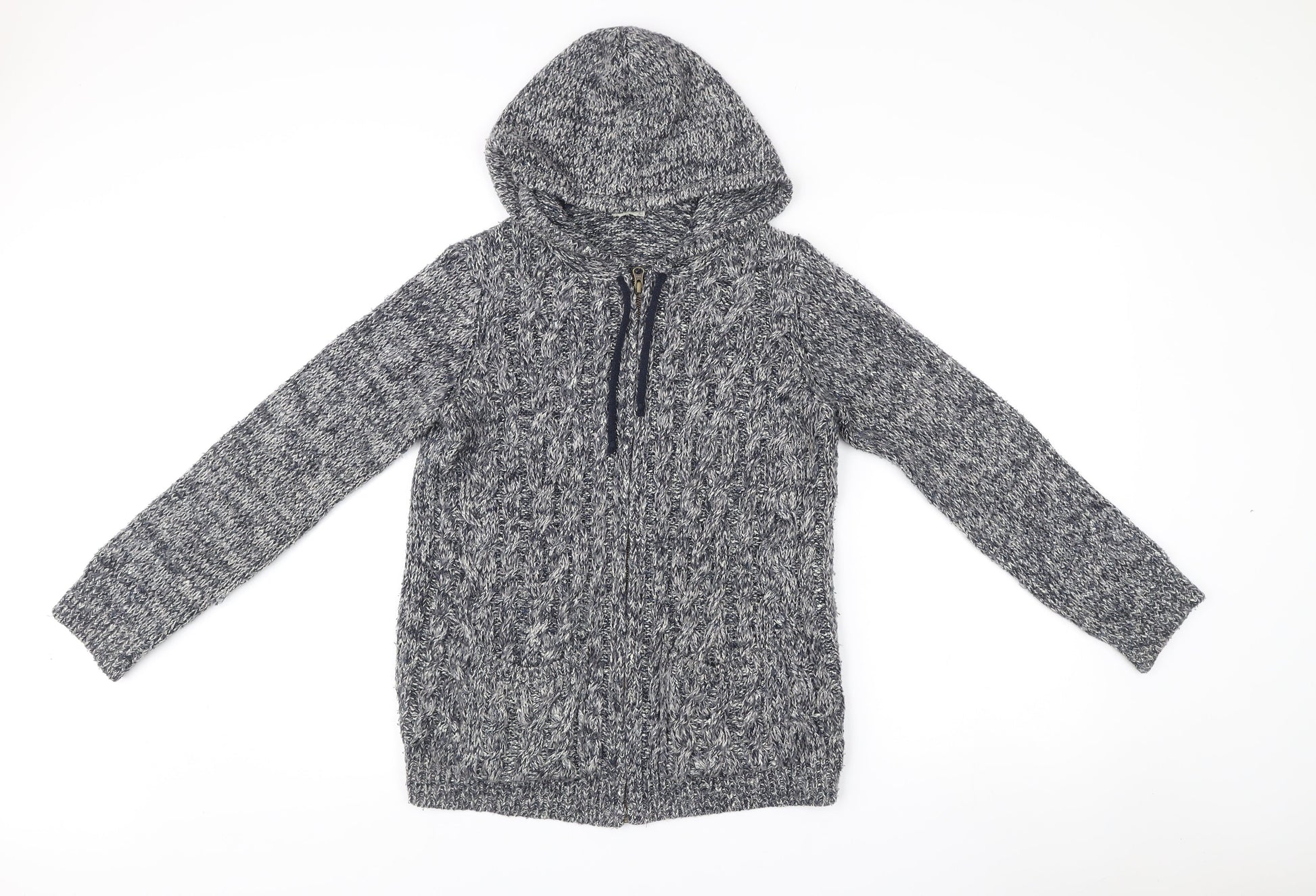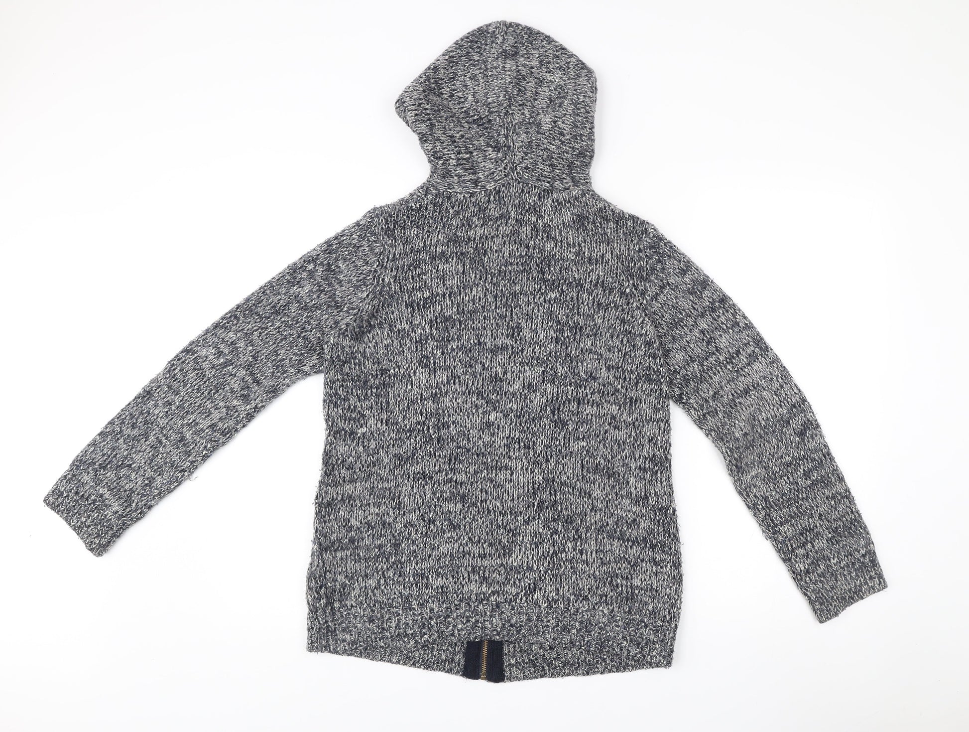 Fat Face Women’s Grey Knit Hooded Coatigan Size 10 Zip Pockets