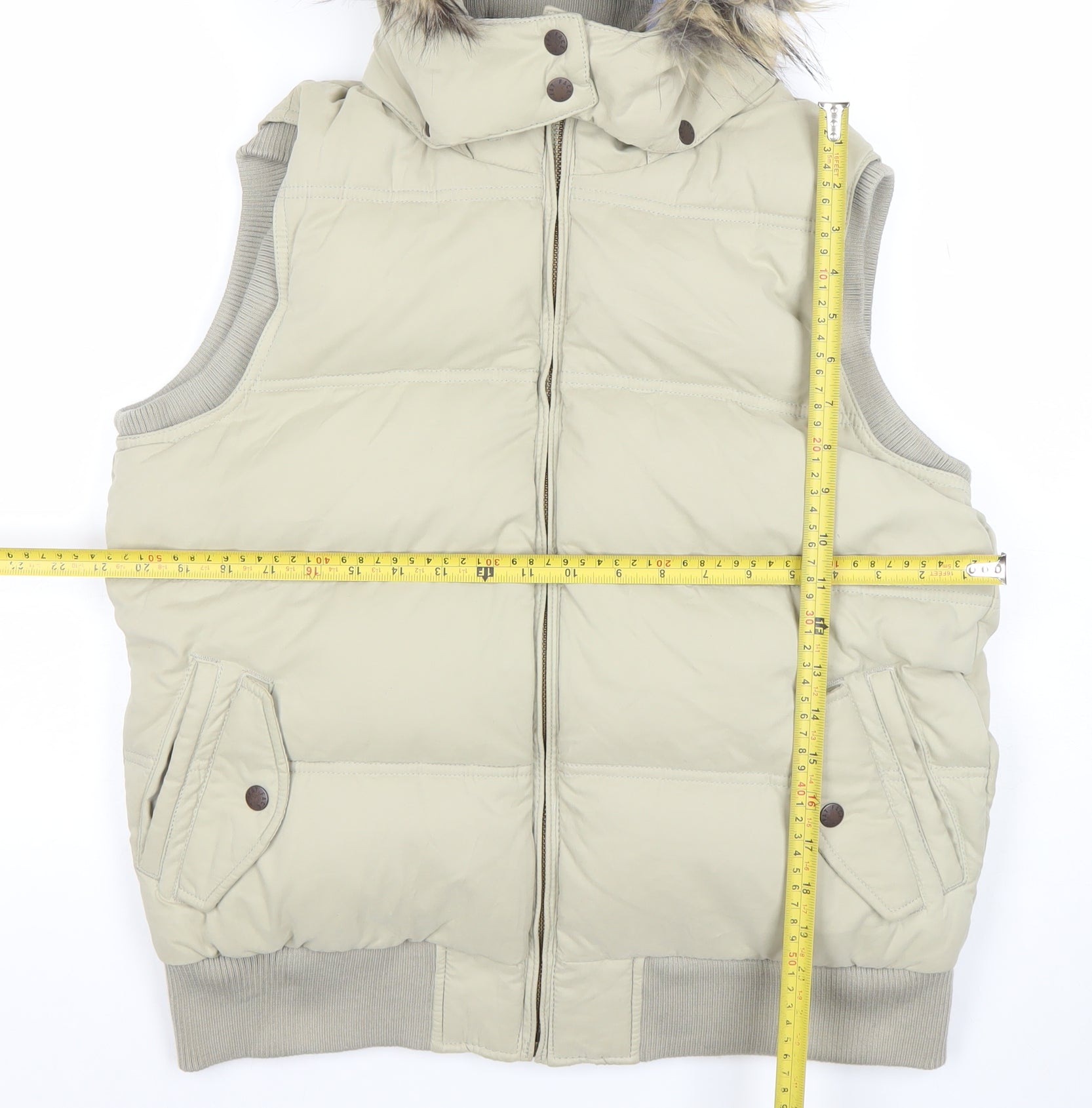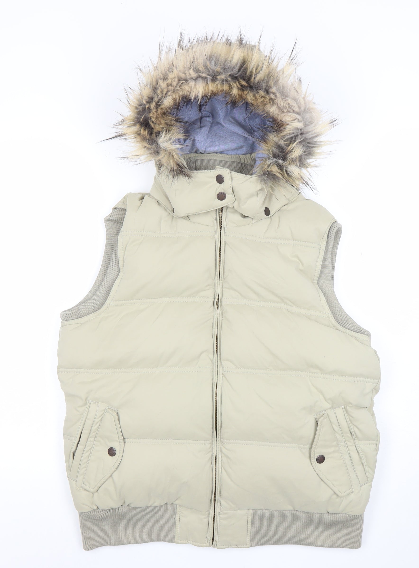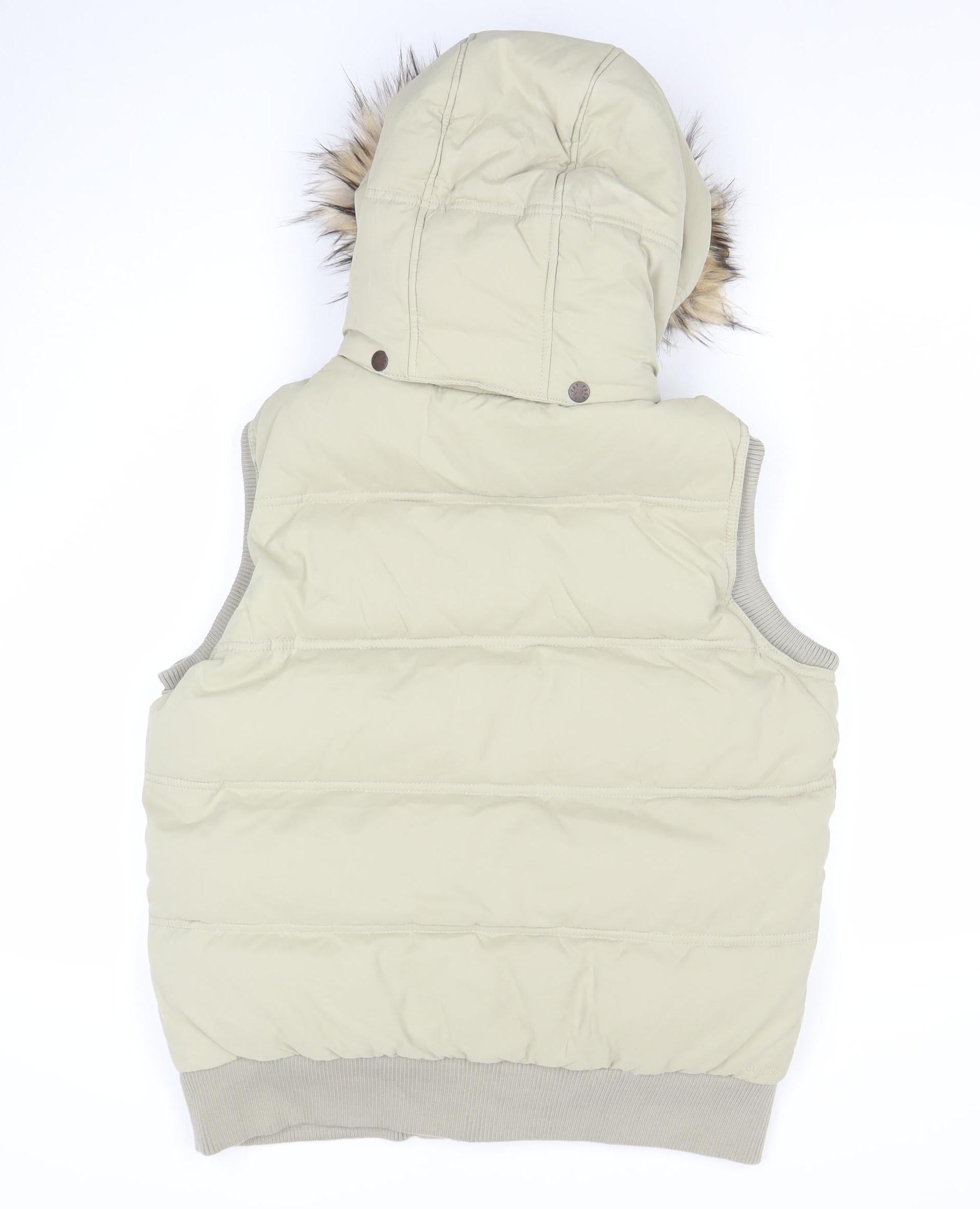 Fat Face Women's Beige Puffer Gilet Size 16 Hooded Down Waistcoat