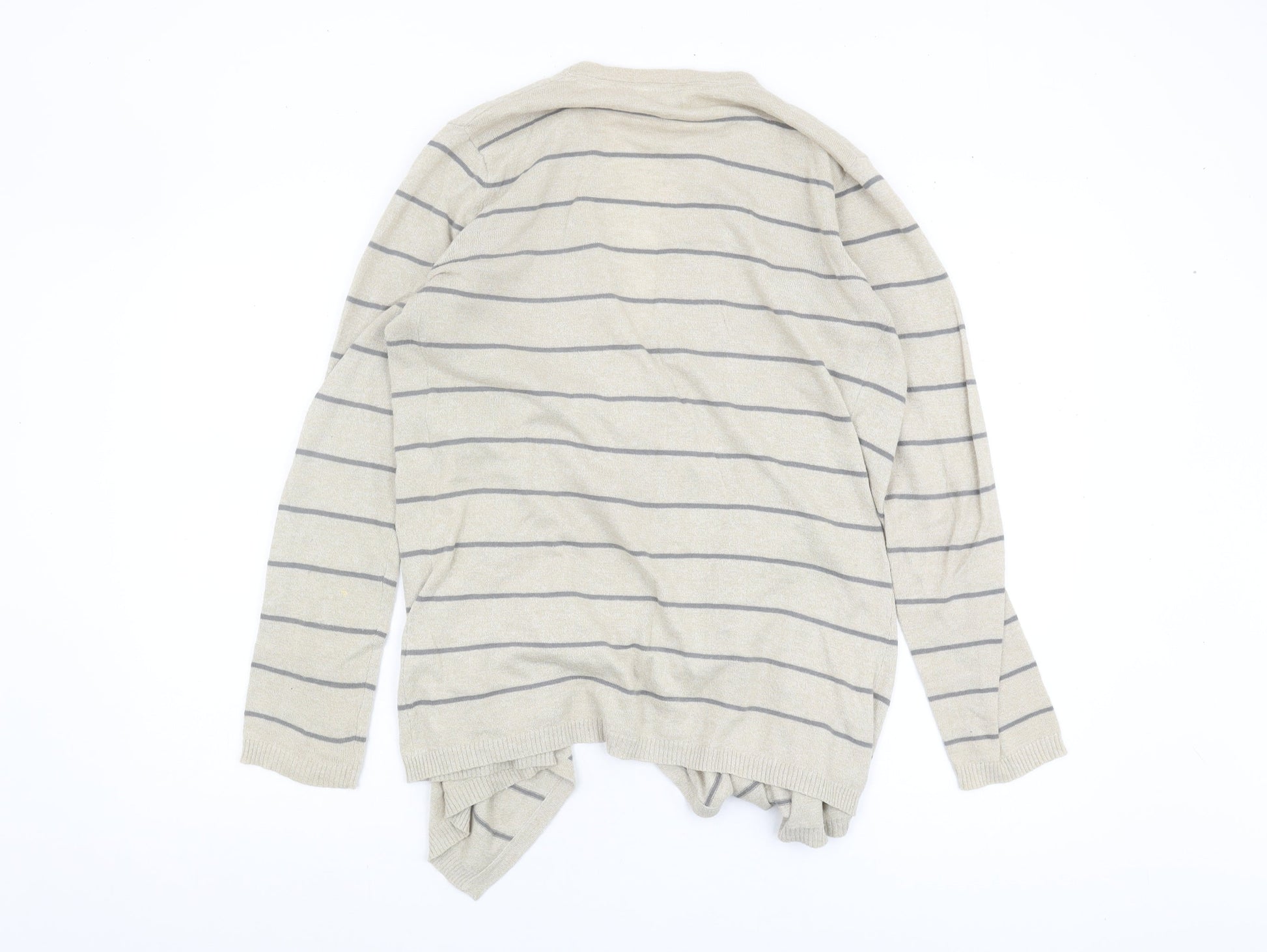 Fat Face Women's Beige Striped Open Front Cardigan, Size 12
