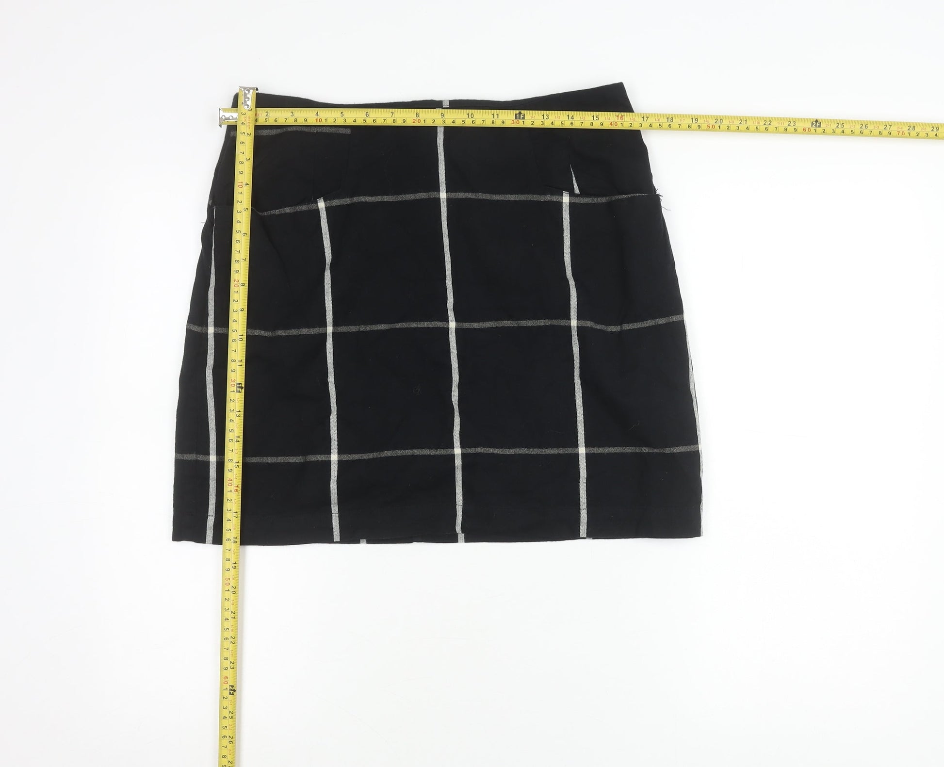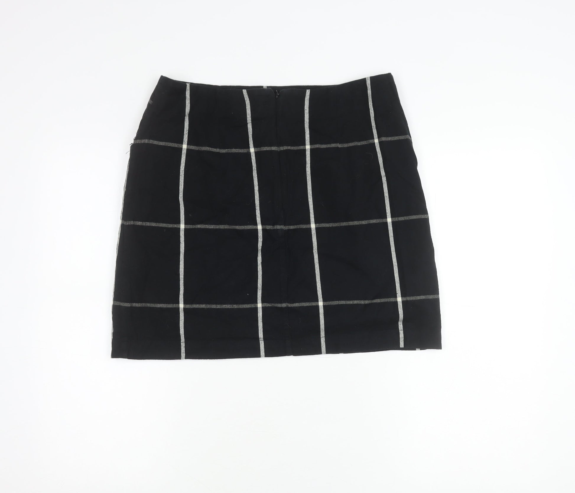 Fat Face Womens Black Check Pencil Skirt Size 12 Cotton Workwear