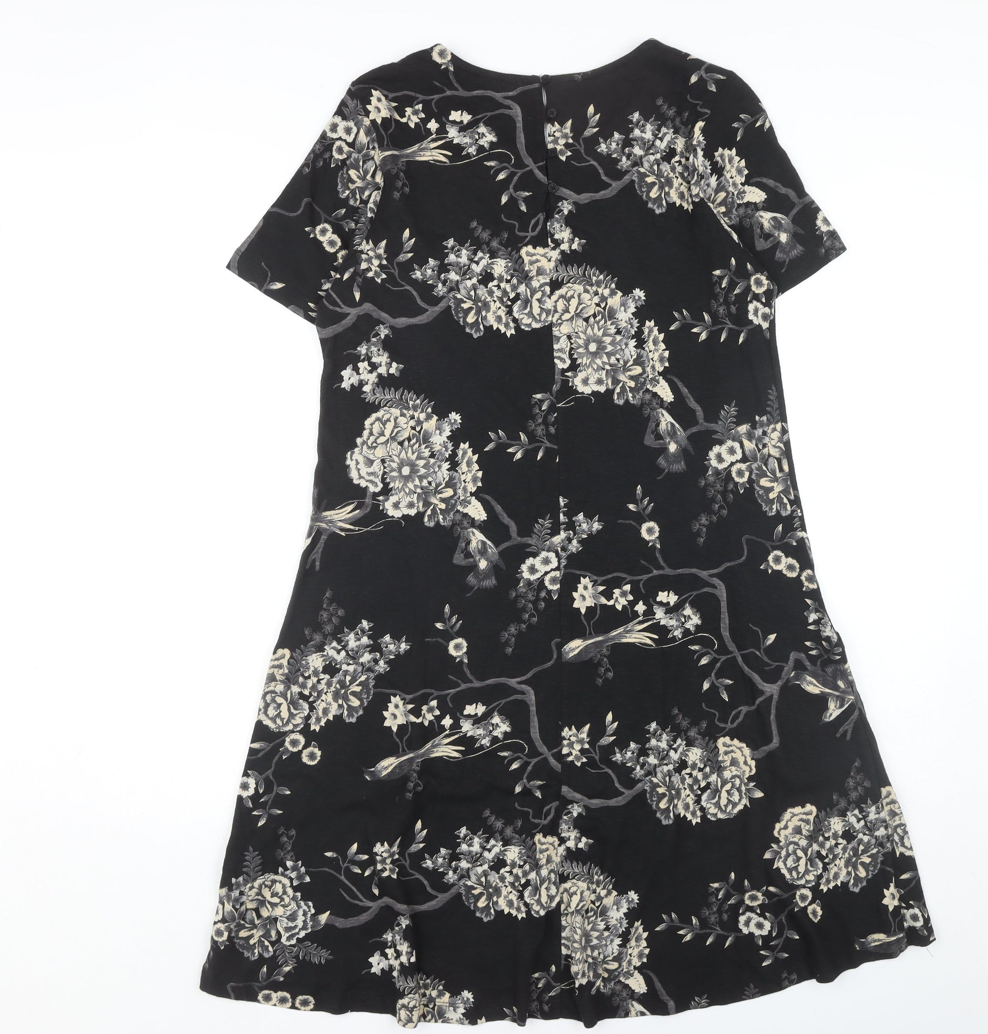Fat Face Women's Black Floral A-Line Dress Size 10