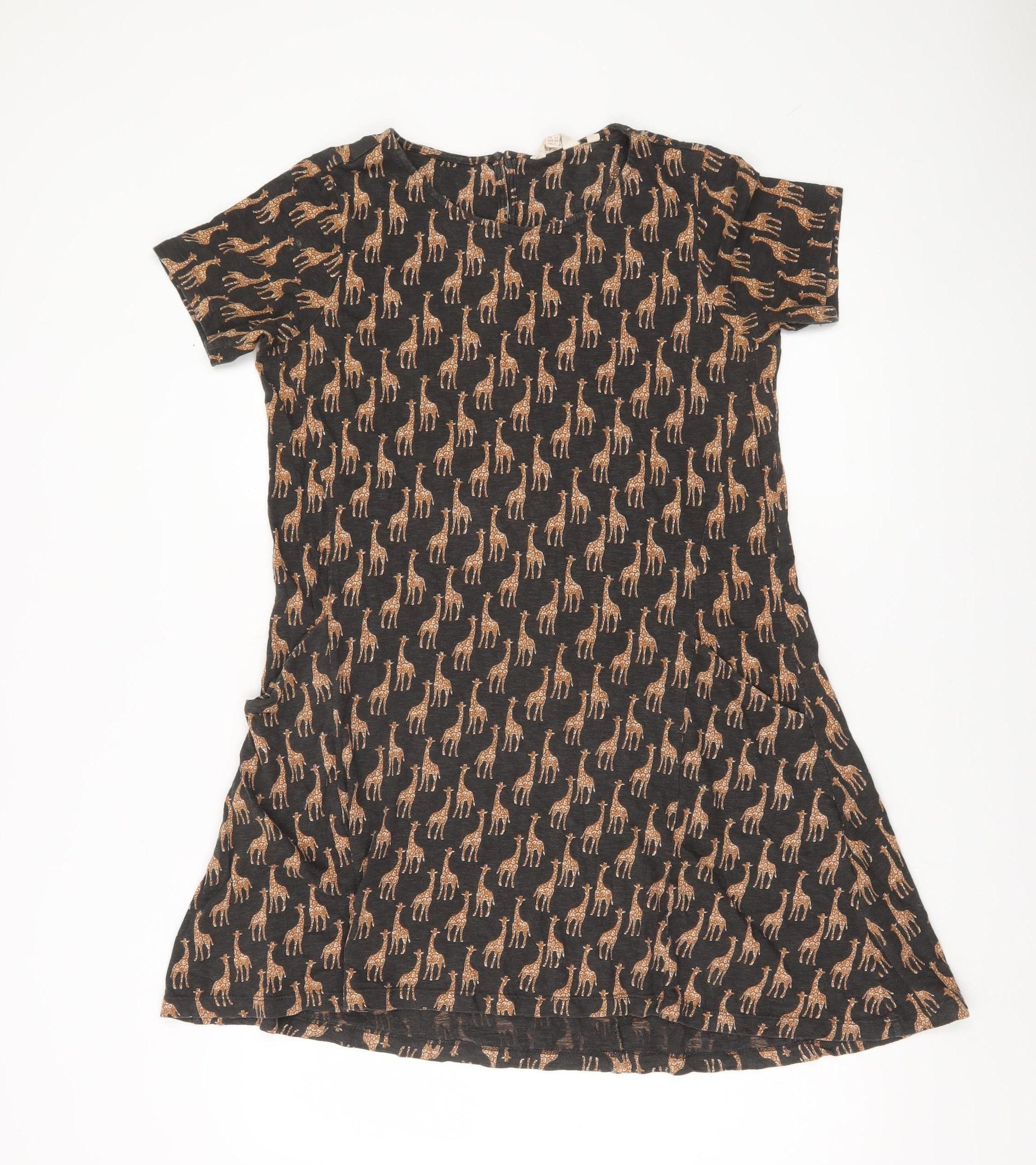 Fat Face Womens Black Giraffe Print Shift Dress UK 6 Short Sleeve