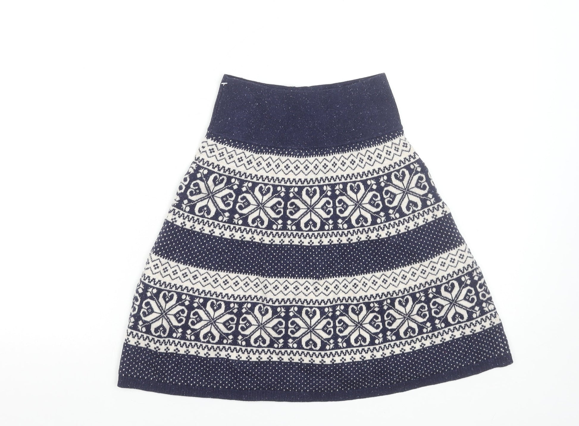Fat Face Women's Blue Fair Isle Knit A-Line Skirt Size 6