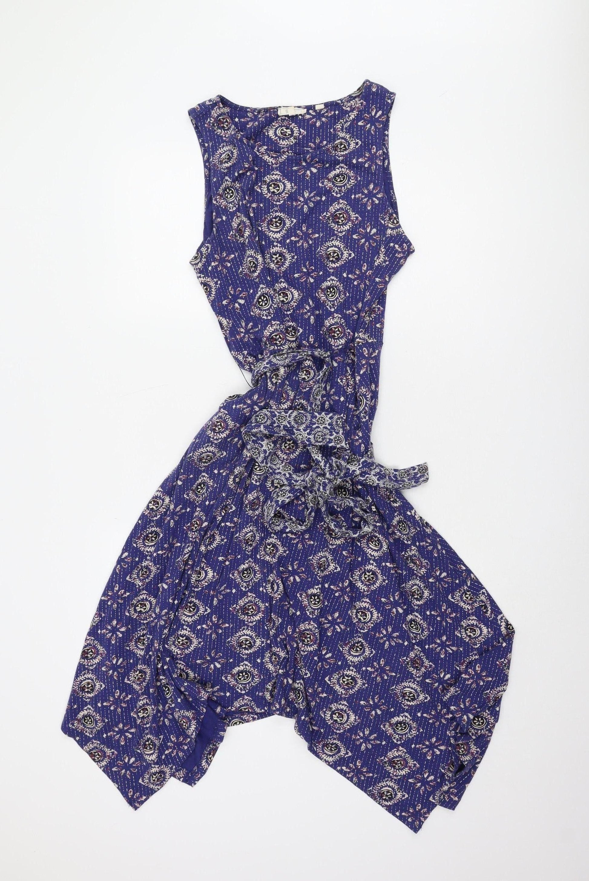 Fat Face Women's Blue Geometric Jersey Dress, Size 14