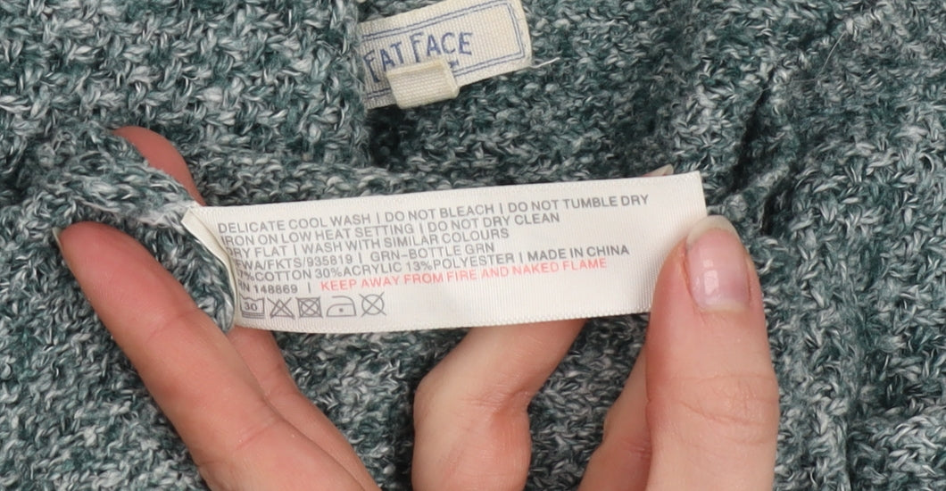 Fat Face Womens Green Cotton Blend Crew Neck Jumper Size 10