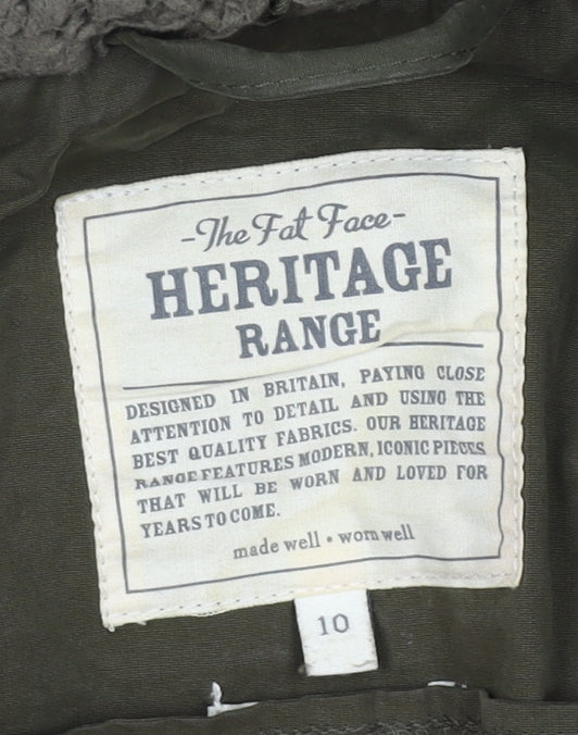 Fat Face Women's Green Hooded Parka Size 10 Regular