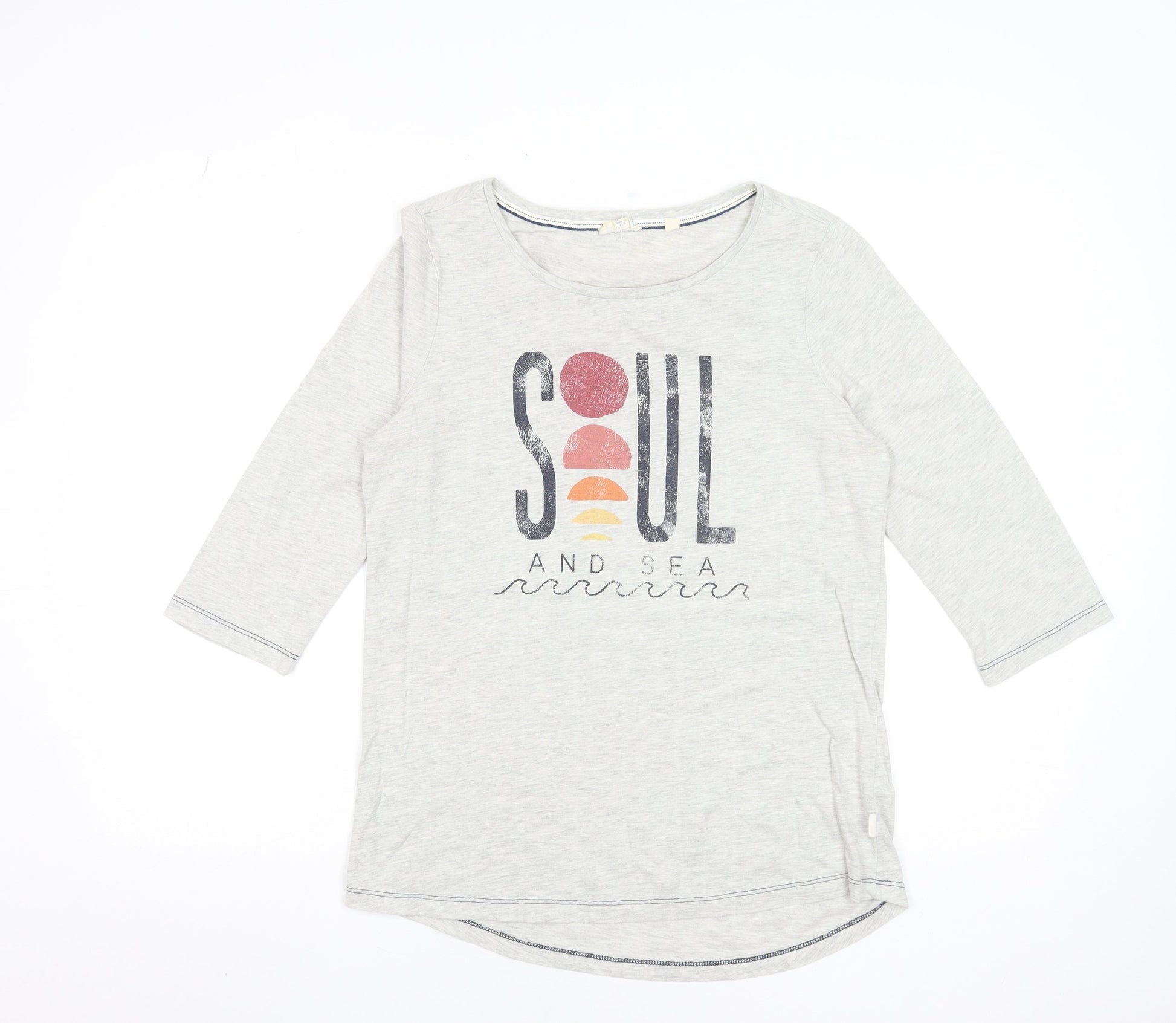 Fat Face Women's Grey 3/4 Sleeve Crew Neck Cotton T-Shirt UK 12