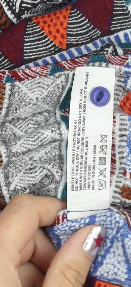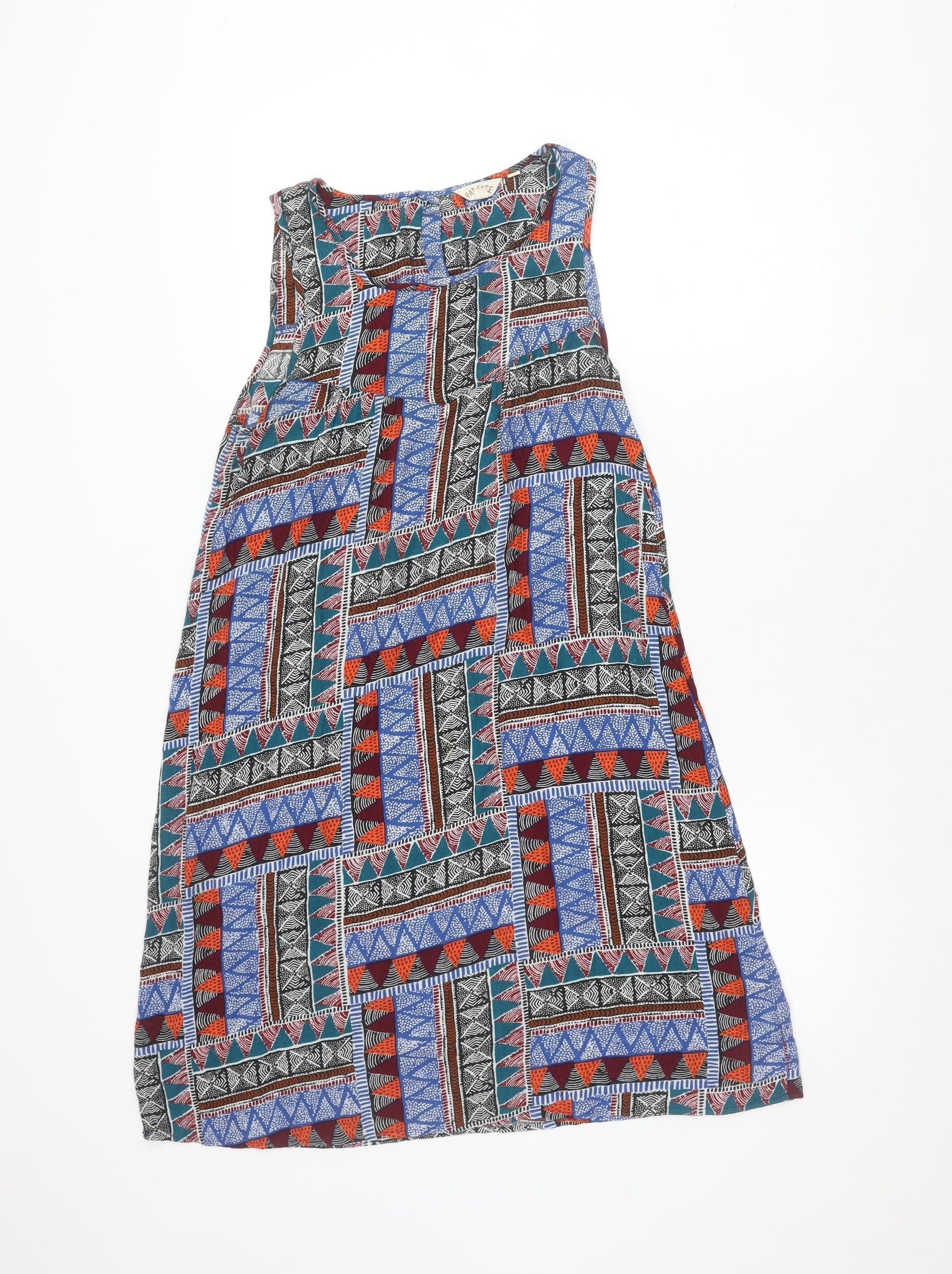 Fat Face Womens Multicoloured Geometric Scoop Neck Shift Dress Size 8