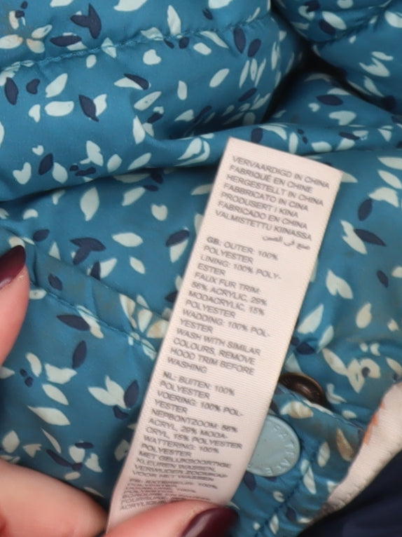 FatFace Girls Blue Floral Hooded Puffer Coat 8-9 Years Winter Lined Jacket