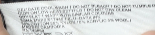 - Material Breakdown: 75% Cotton 20% Nylon 15% Acrylic 5% Wool