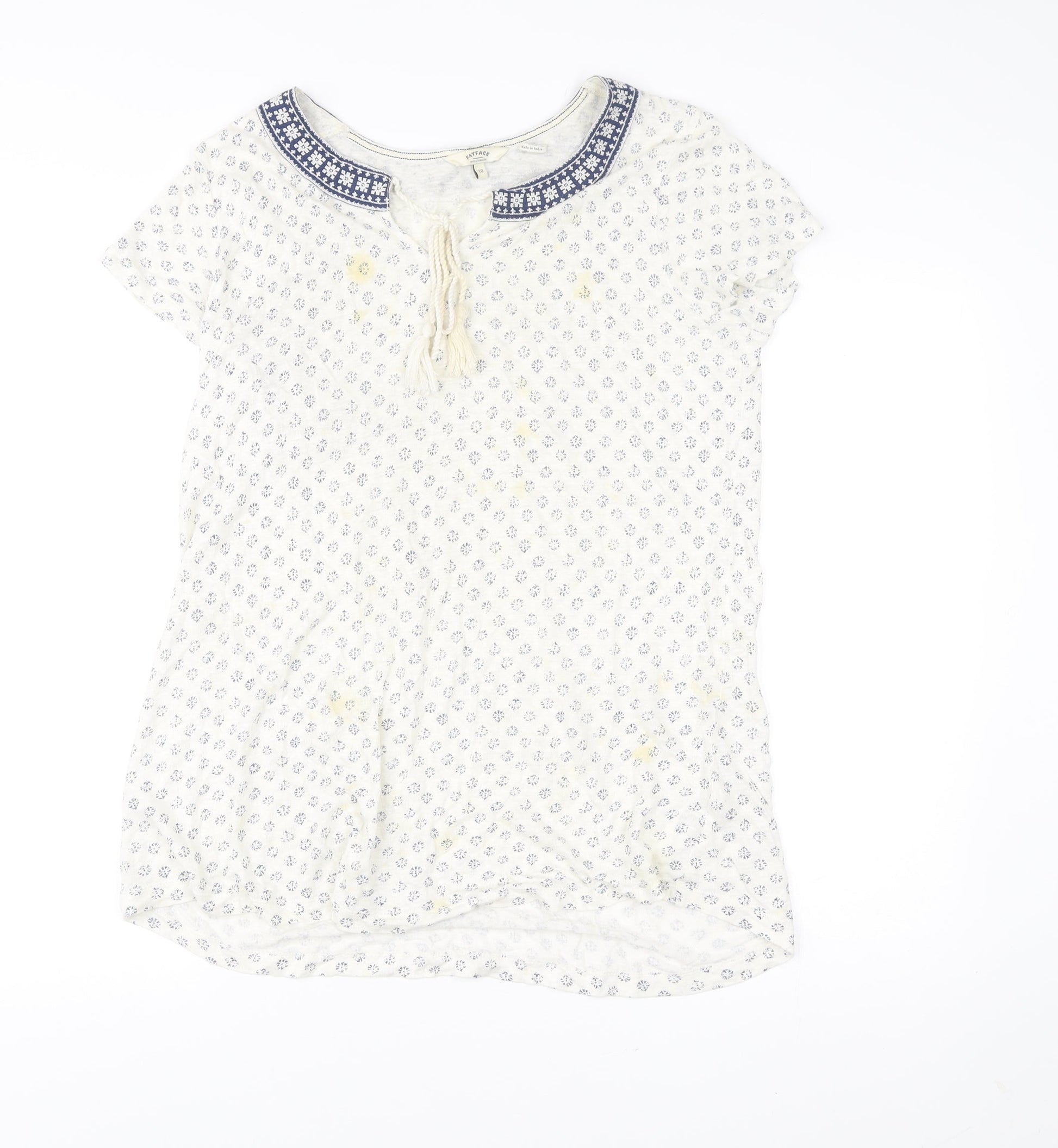 FatFace Women’s White Floral Tunic Blouse Size 10 Linen