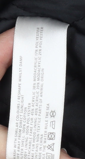 FatFace Women's Black Parka Coat Size 8 with Fur Trim