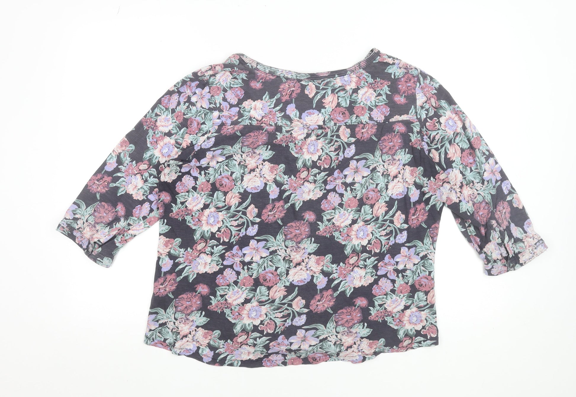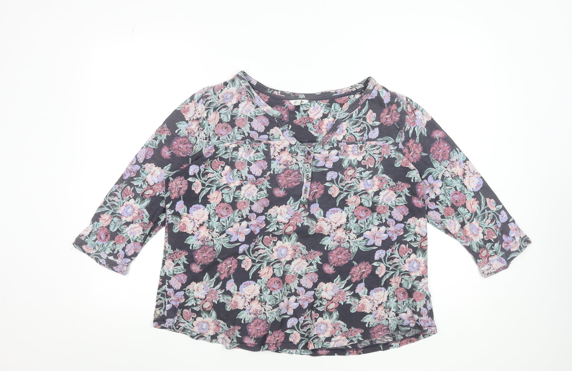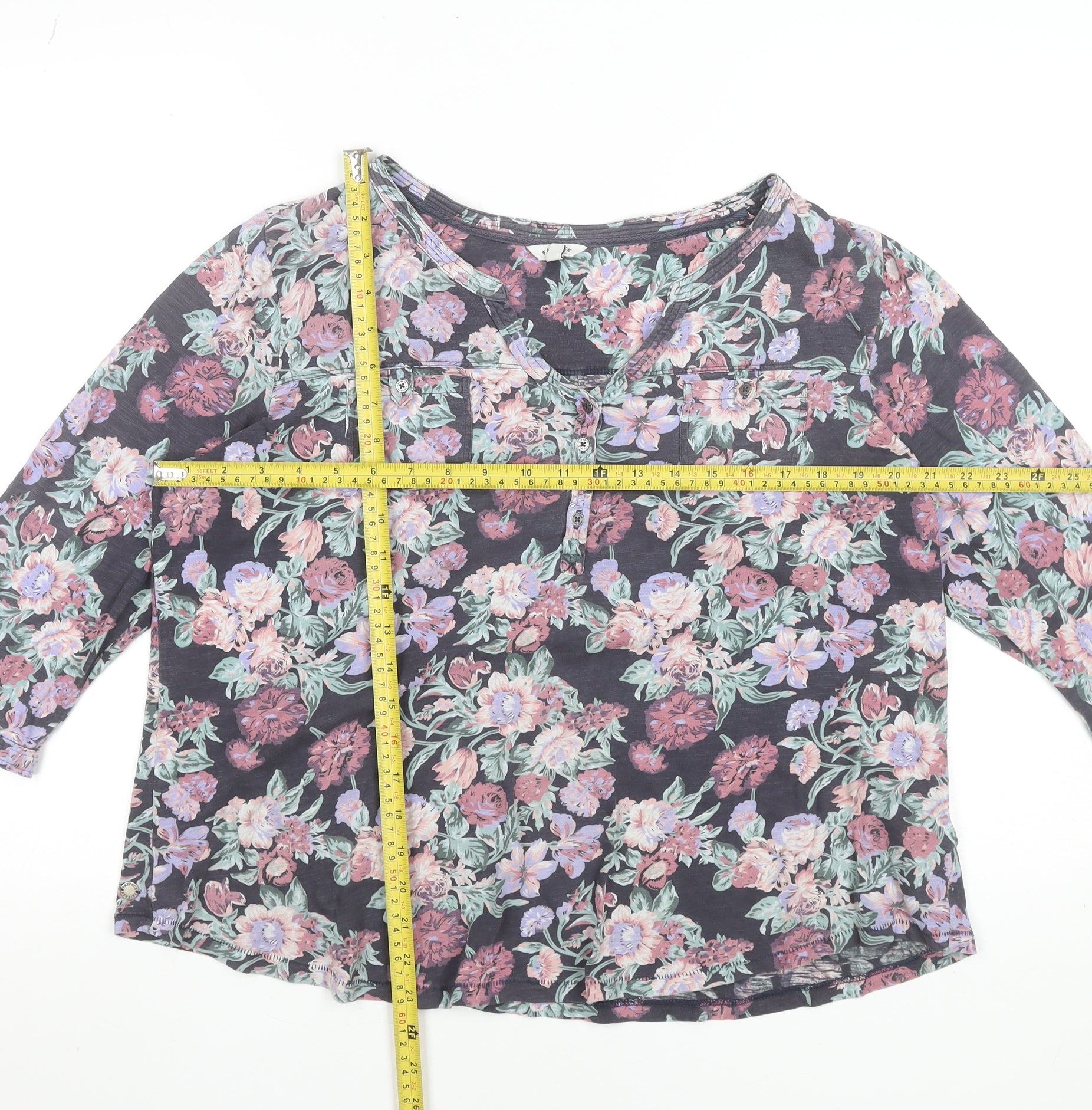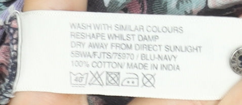 FatFace Womens Blue Floral Cotton Tunic Blouse Size 18 3/4 Sleeve