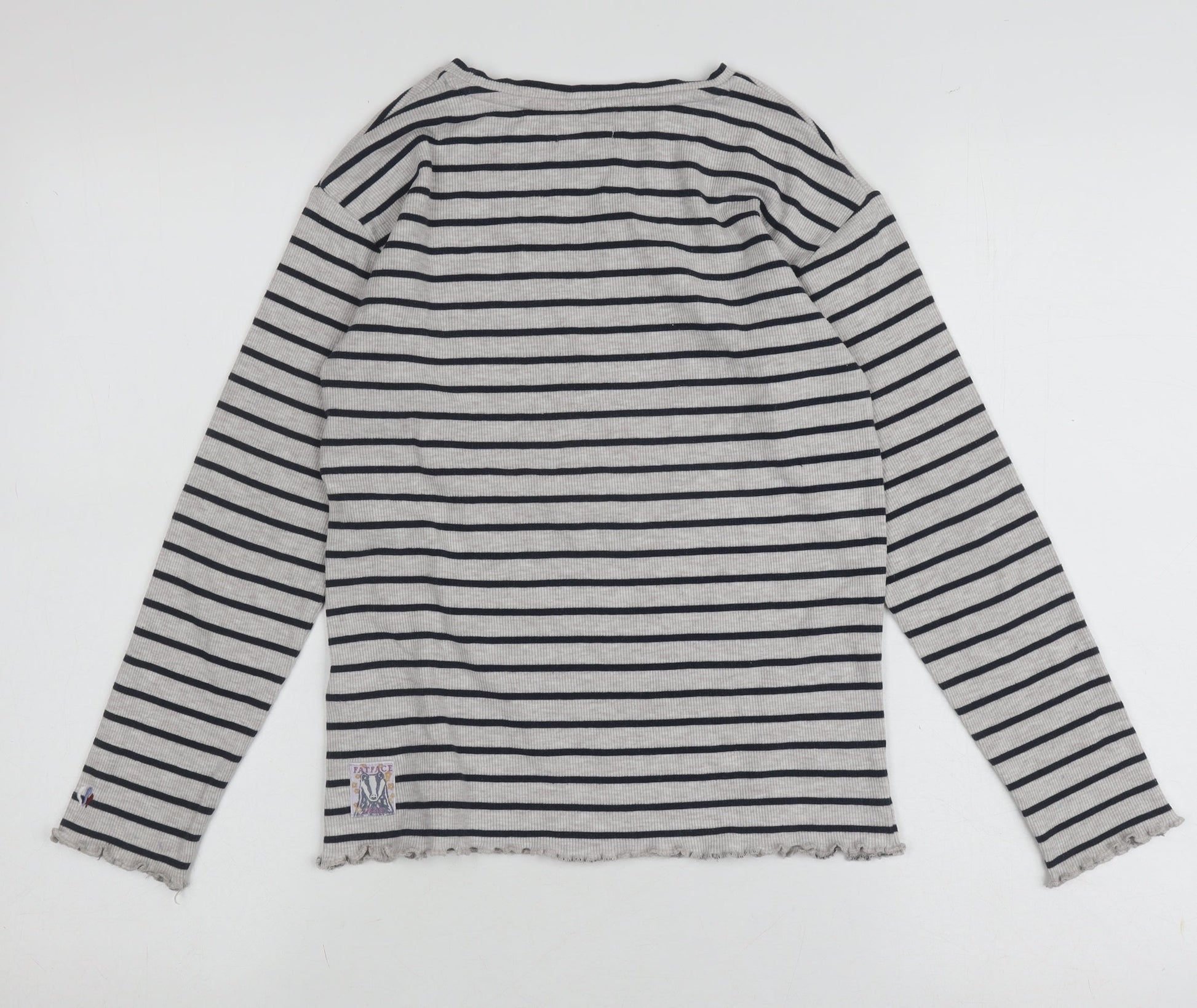 FatFace Women's Grey Striped Jersey T-Shirt Size 10/11
