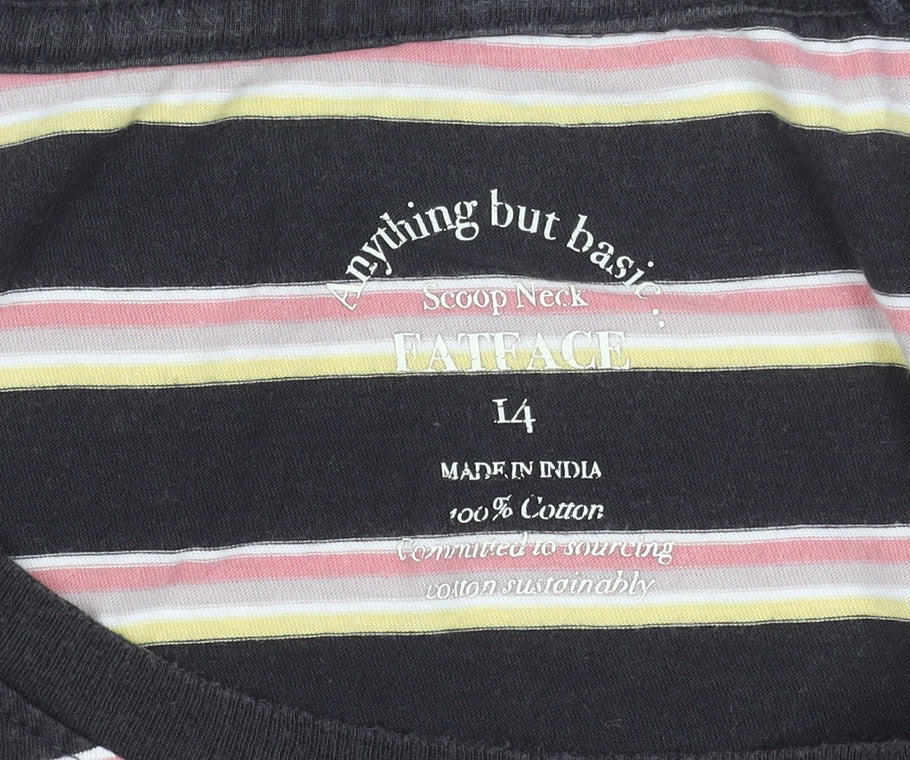 FatFace Womens Multicoloured Striped Long Sleeve Cotton Scoop Neck Top - Size L