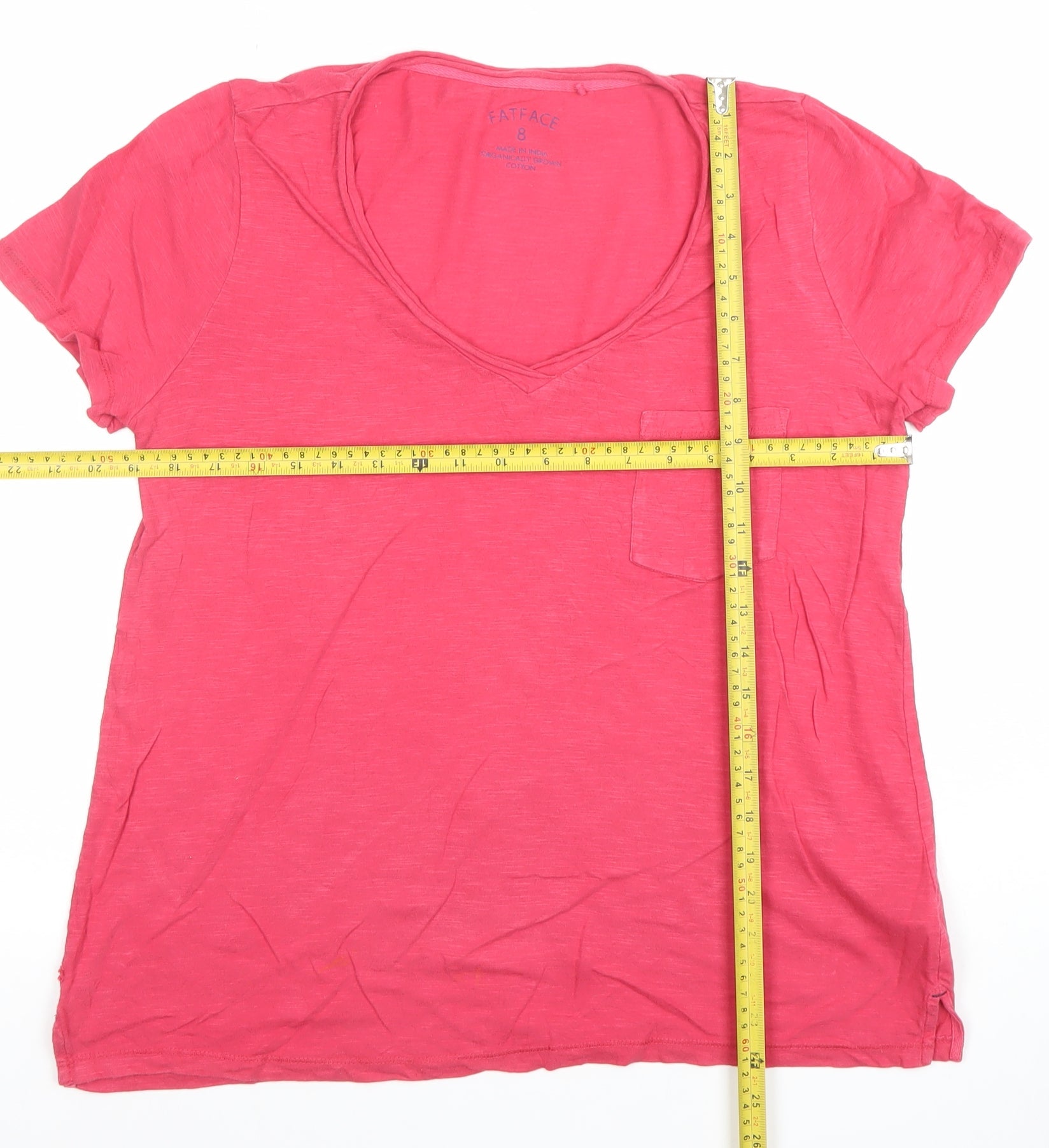 FatFace Women's Pink Organic Cotton V-Neck T-Shirt Size 8