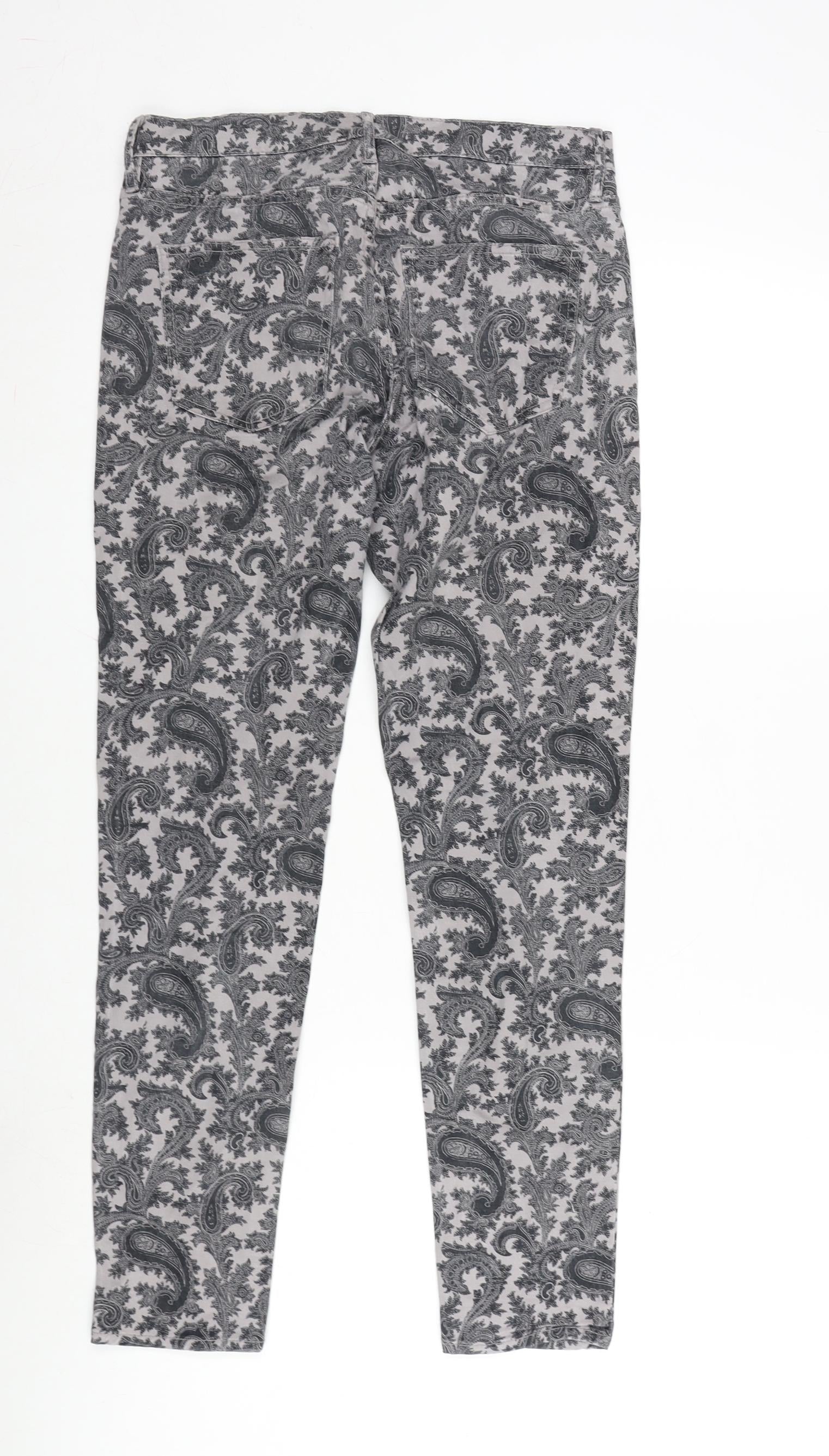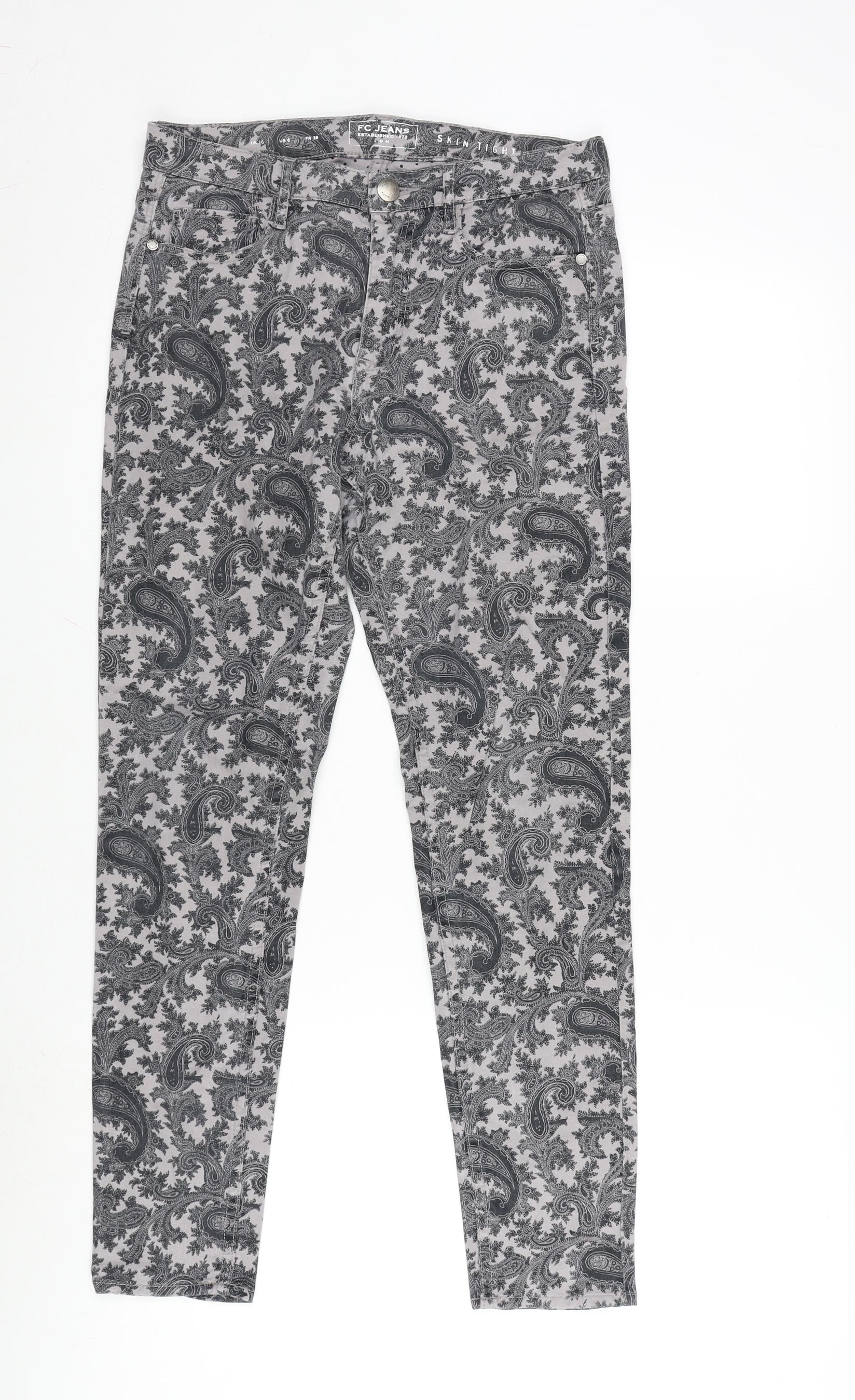 FC Jeans Womens Grey Paisley Cotton Blend Straight Jeans Size 10 L27 in Extra-Slim Zip