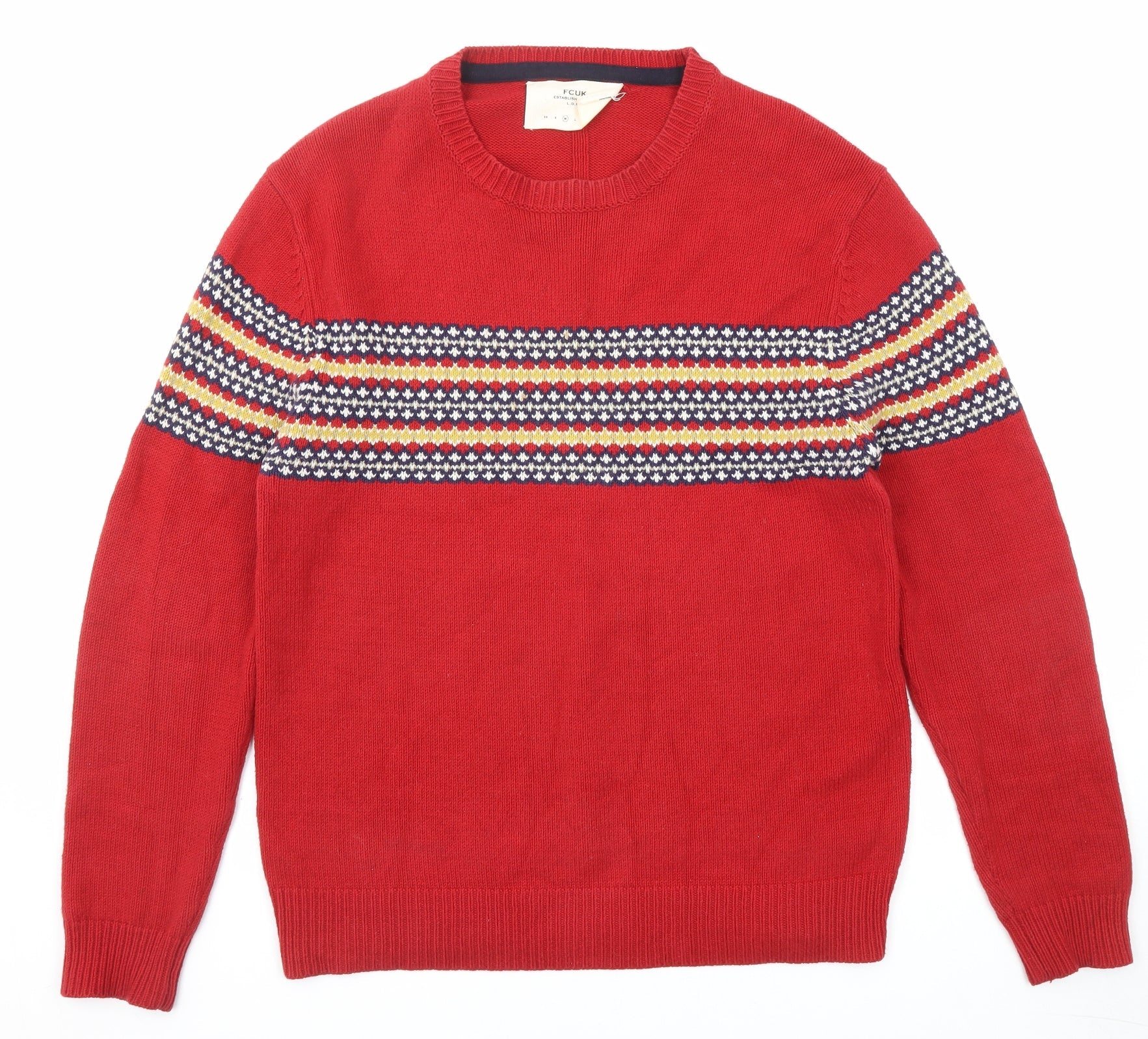 Fcuk Mens Red Round Neck Cotton Pullover Jumper Size M Long Sleeve