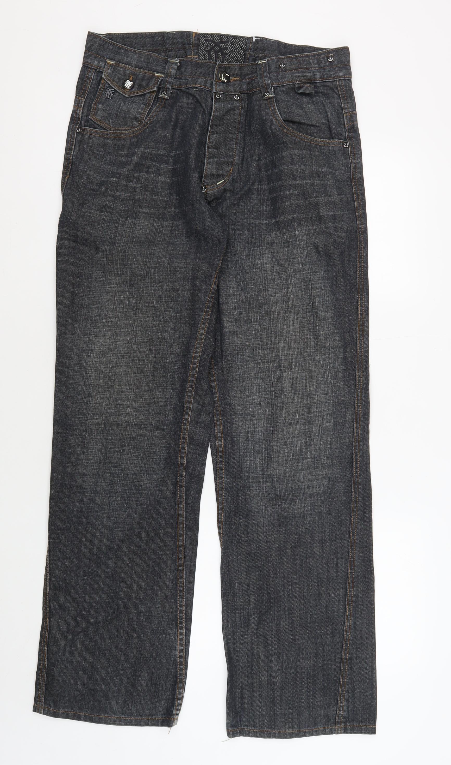 Fenchurch Men's Black 34 Straight Fit Denim Jeans