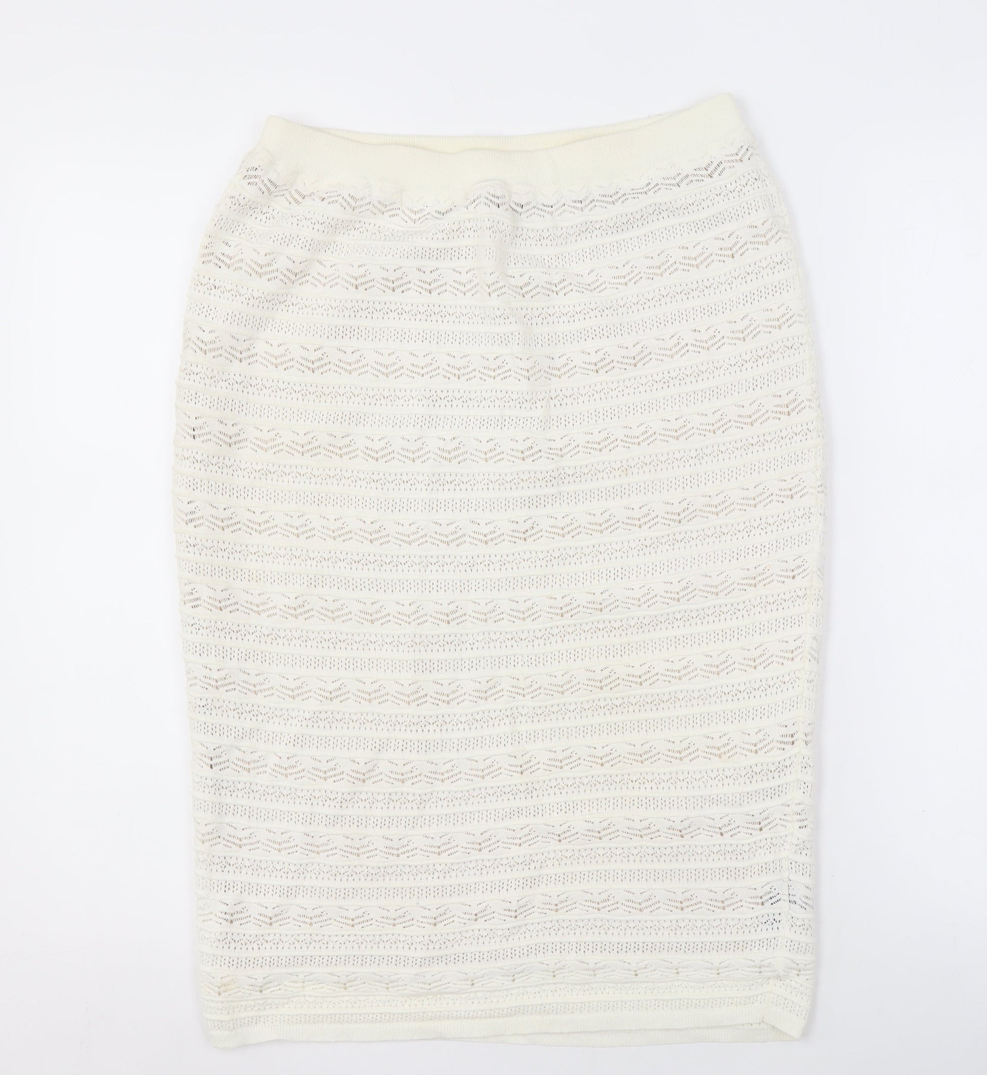 Fenn Wright Manson Ivory Knit Pencil Skirt, M, Women's
