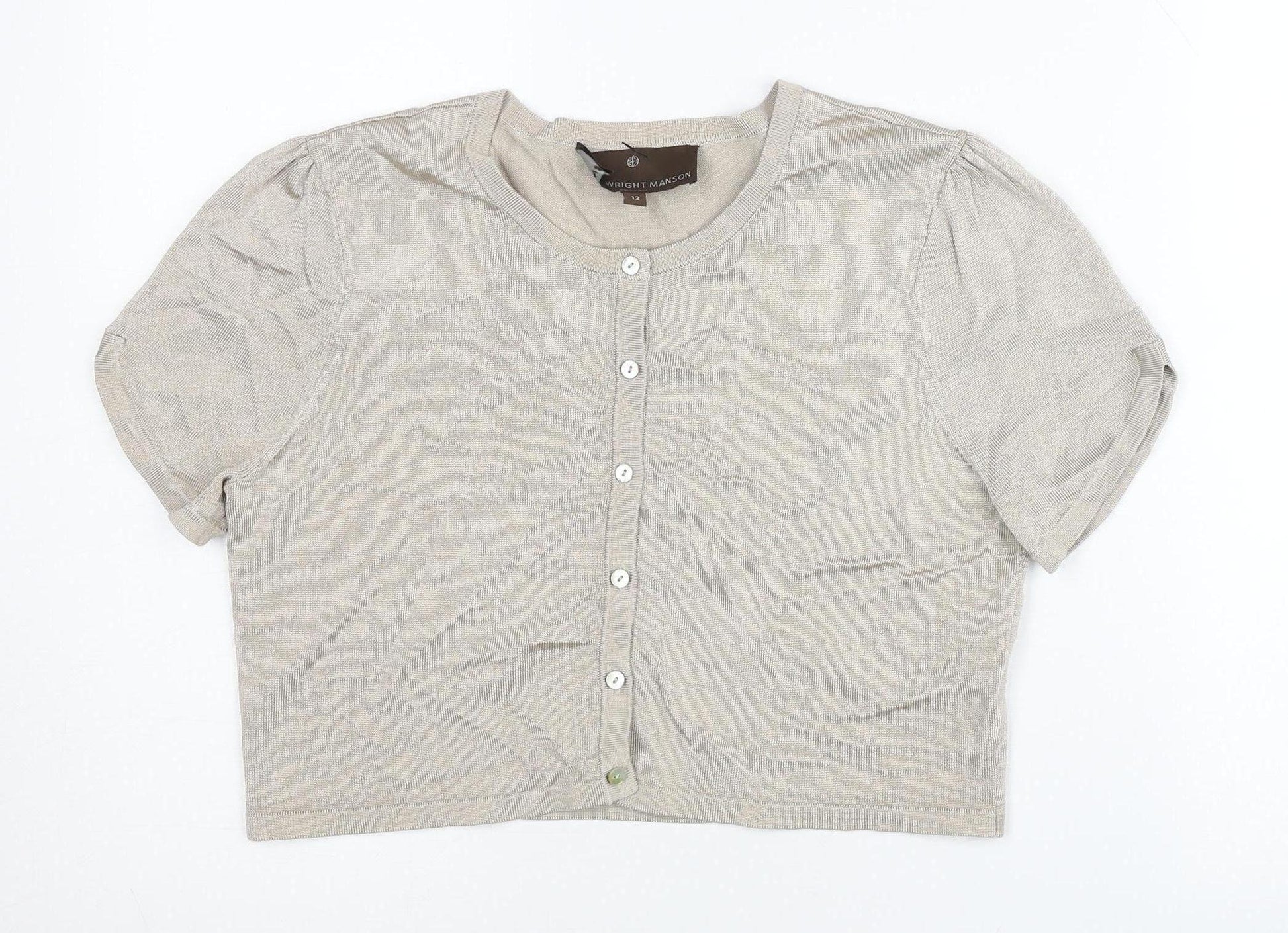 Fenn Wright Manson Women’s Beige Cardigan Size 12 Short Sleeve Knit