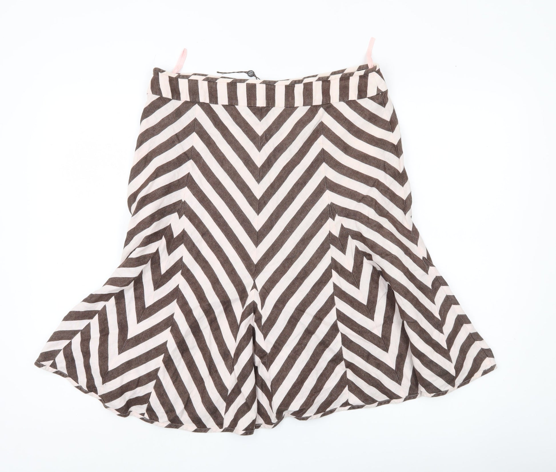 Fenn Wright Manson Women’s Brown Striped Linen A-Line Skirt Size 12