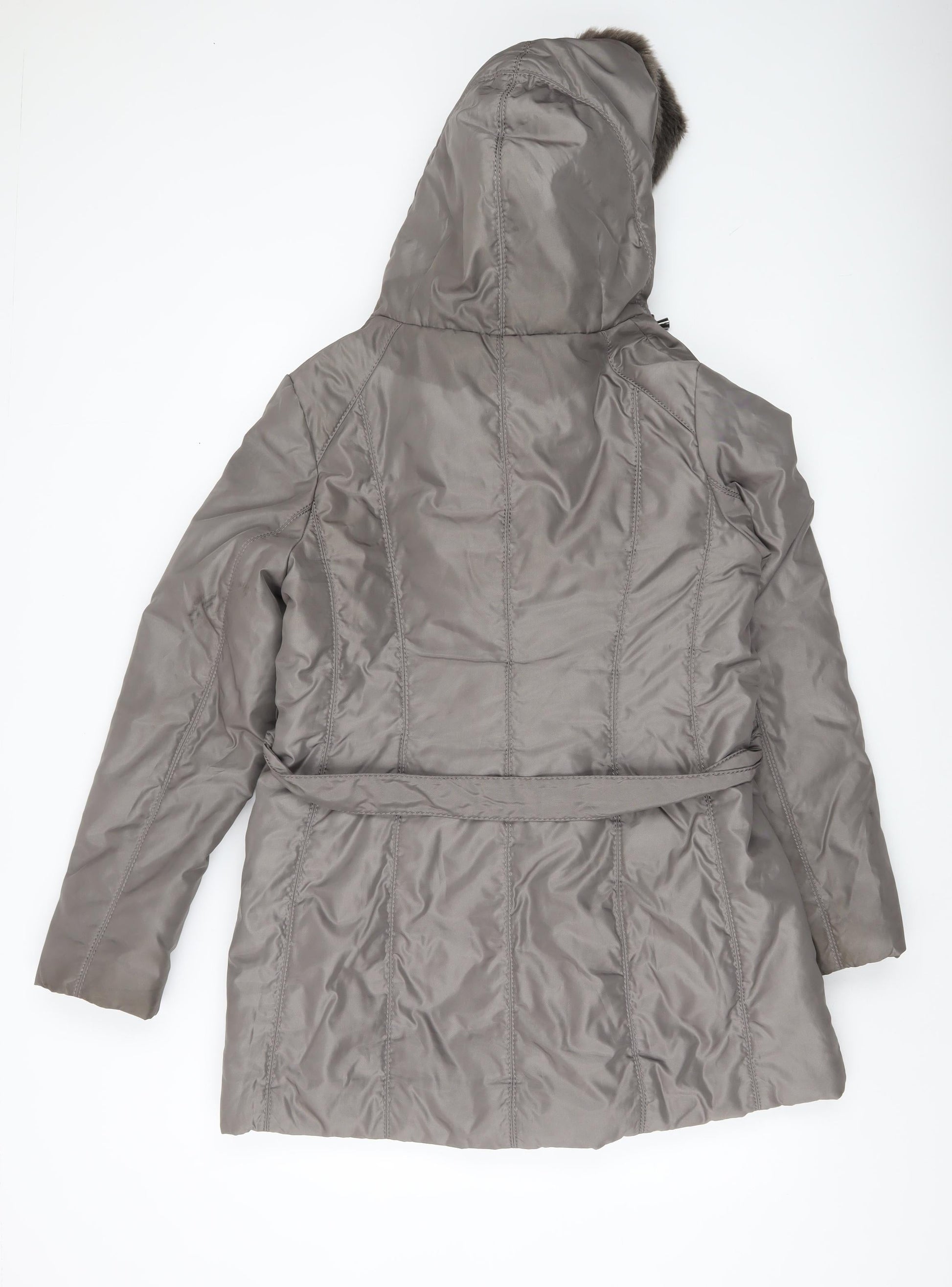 Fenn Wright Manson Women’s Grey Fur Trim Belted Hooded Coat Size 16 XL