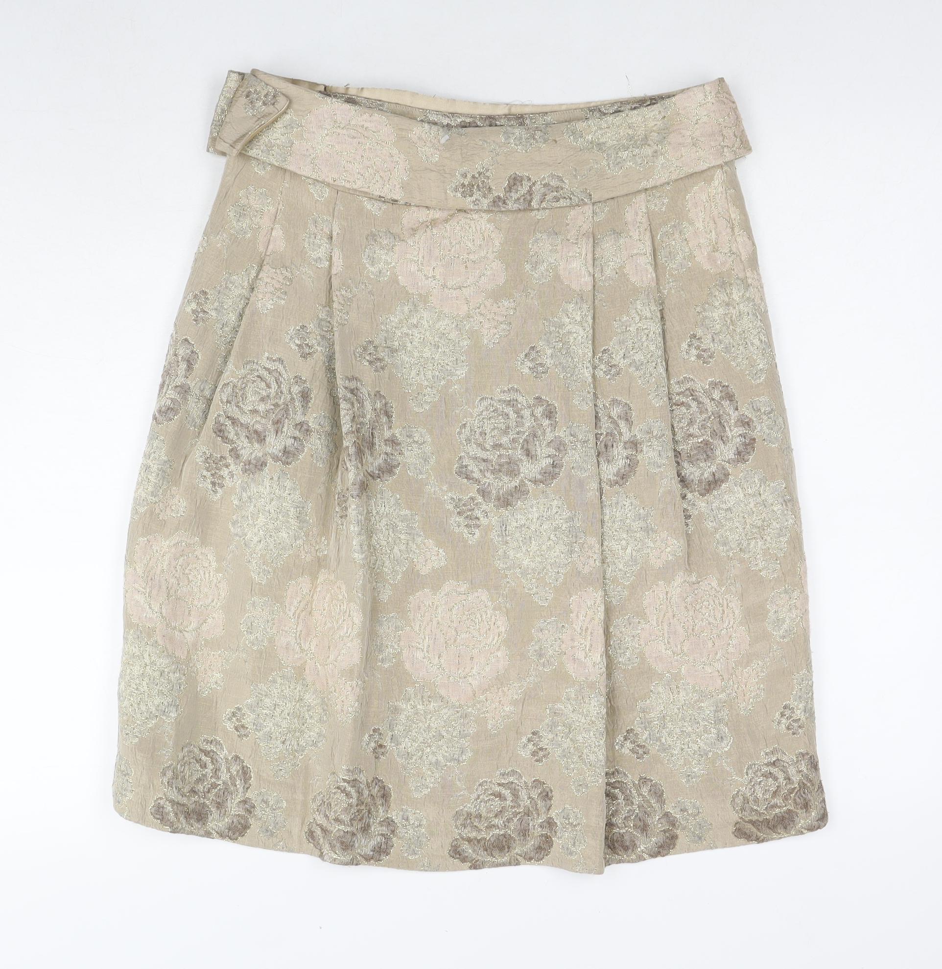 Fenn Wright Manson Womens Beige Floral Acrylic A-Line Skirt Size 12 Zip