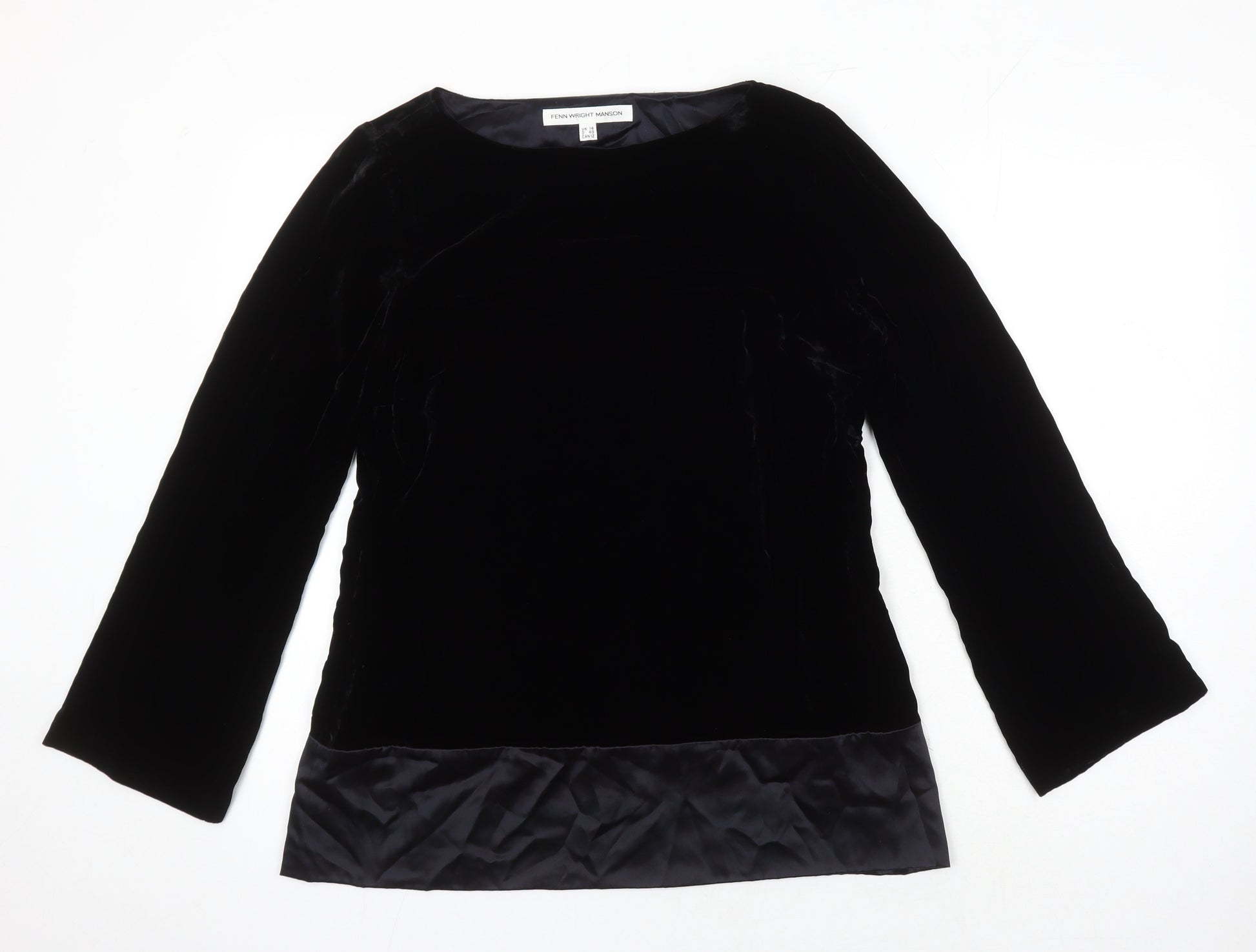 Fenn Wright Manson Womens Black Viscose Tunic Blouse Size 14 Boat Neck