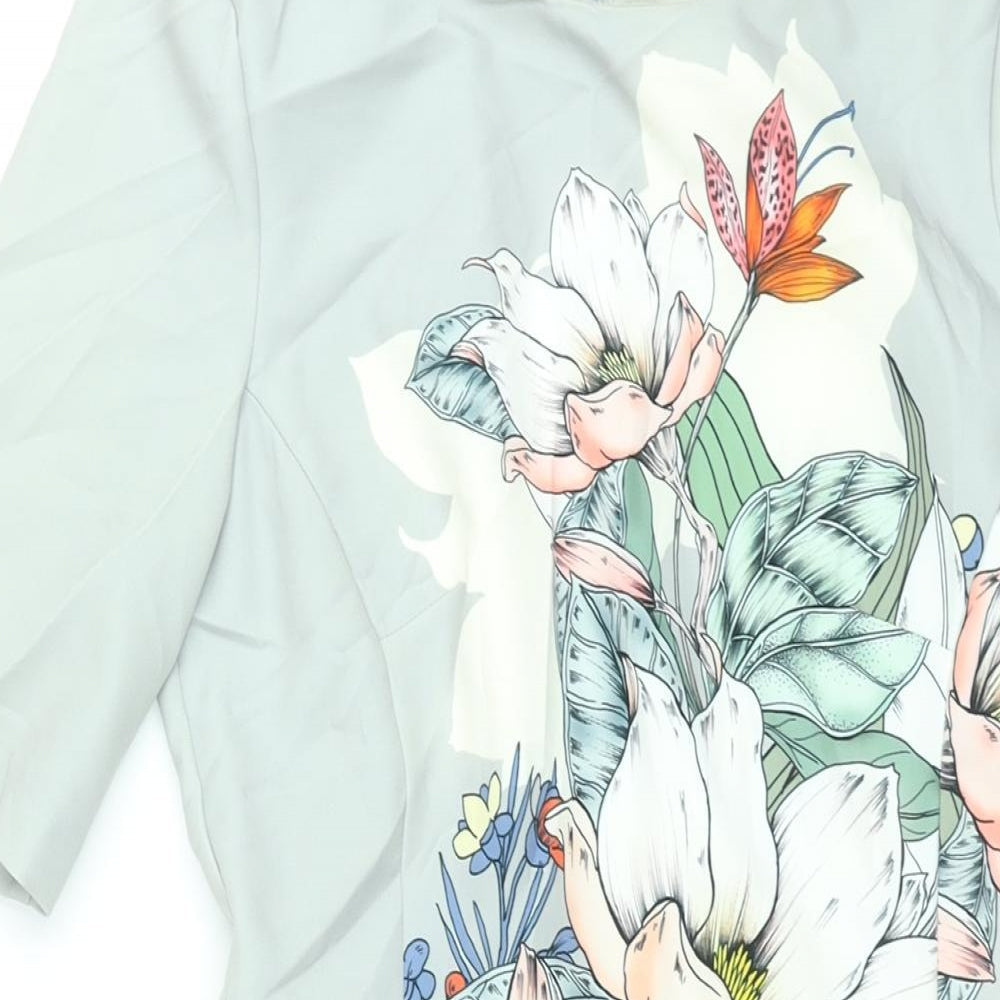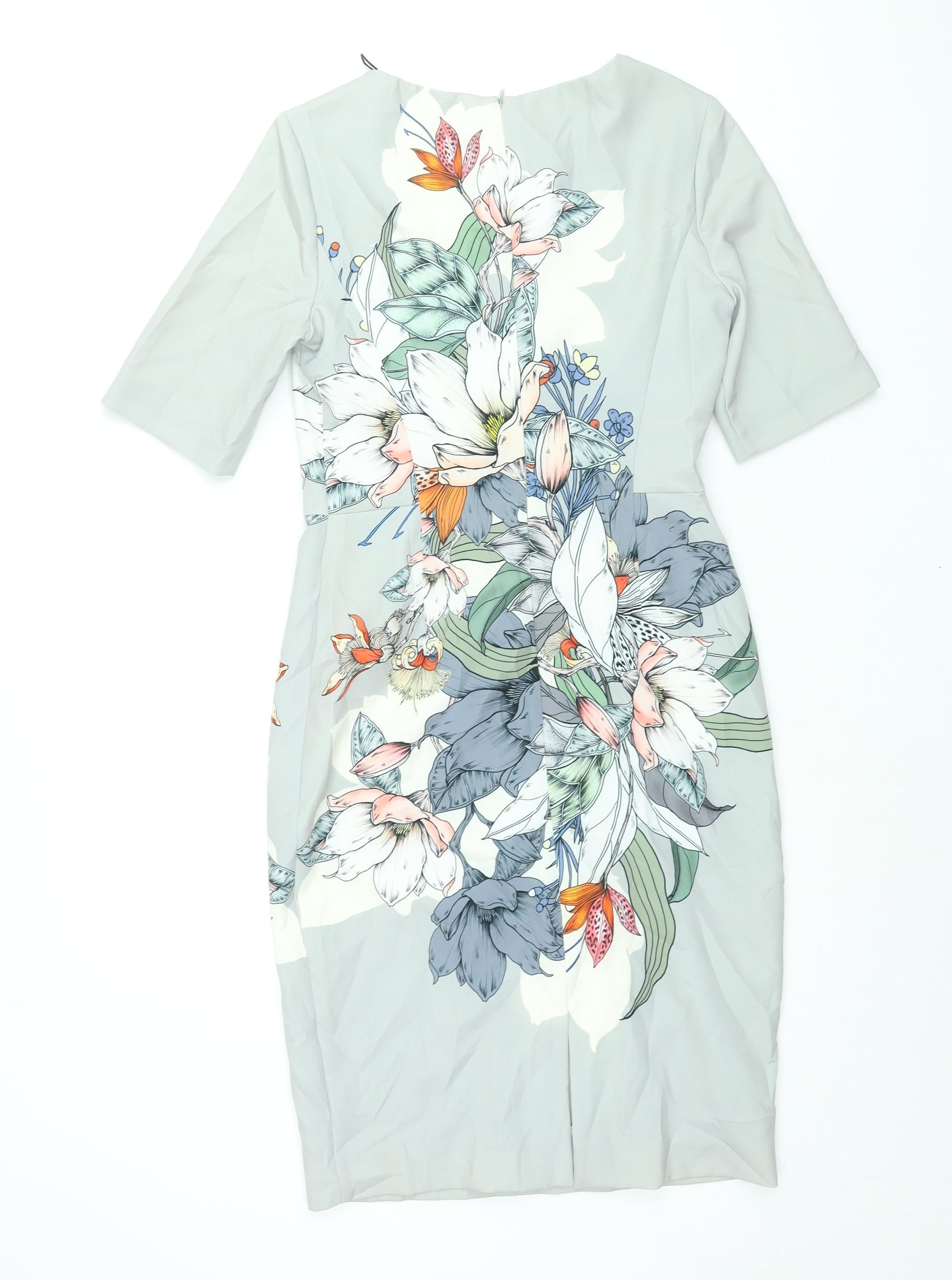 Fenn Wright Manson Womens Grey Polyester Pencil Dress Size 8 Round Neck Zip - Floral Print