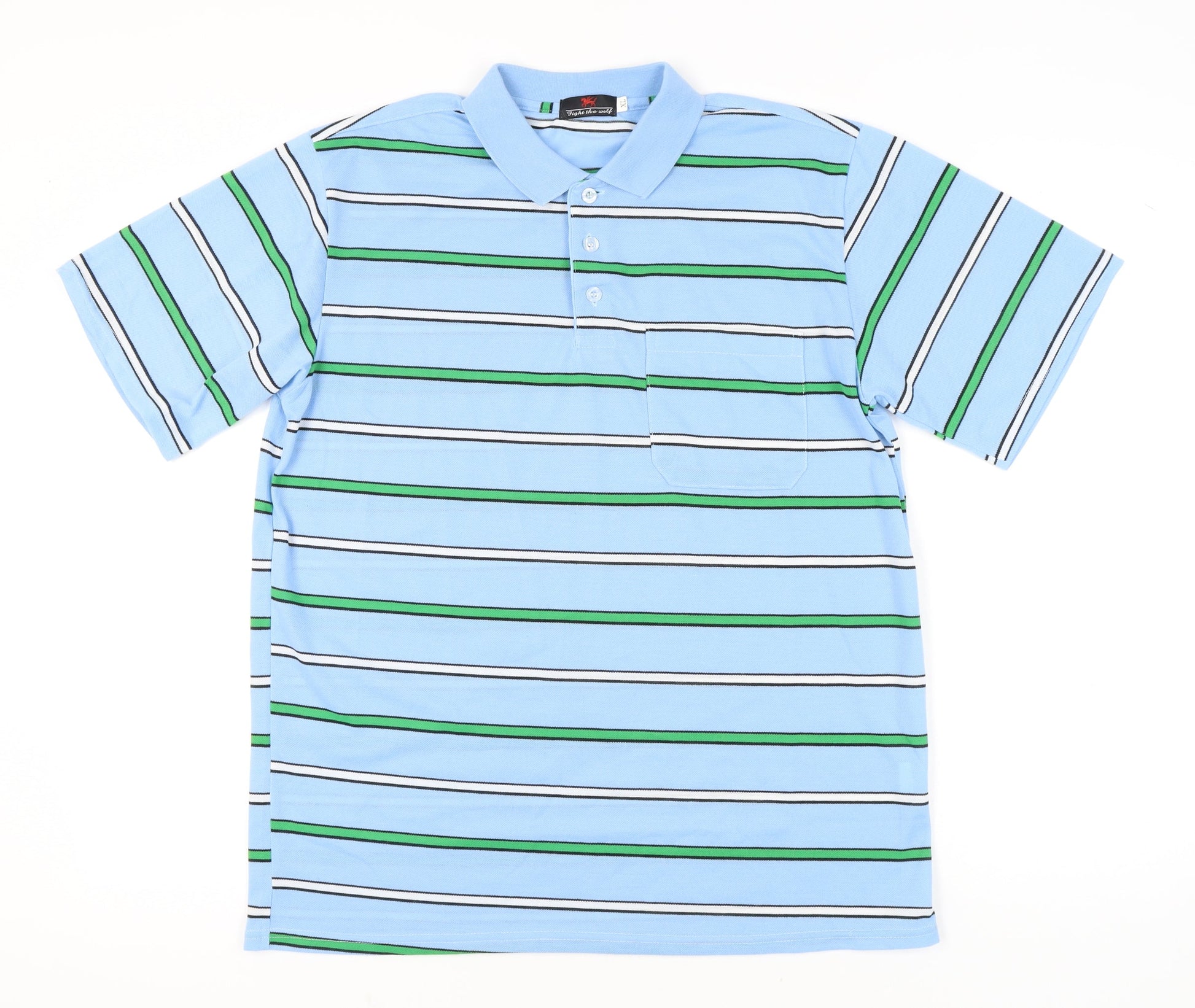Fight the Wolf Men’s Blue Striped Polo Shirt XL Cotton Blend