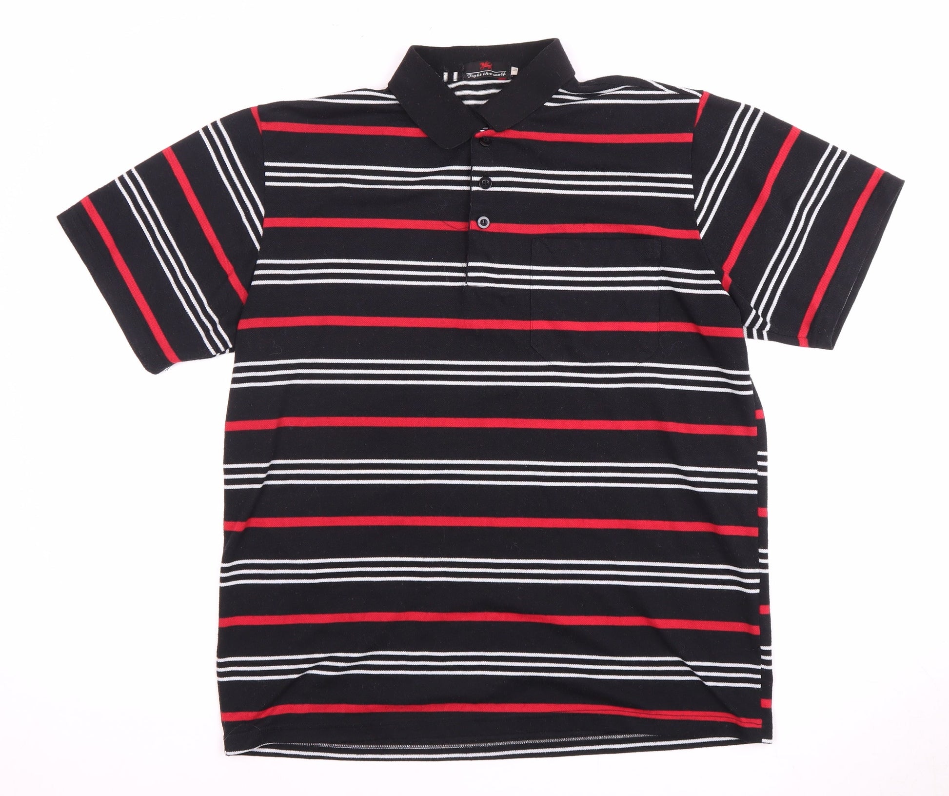 Fight the Wolf Men's Black Striped Polo Shirt S