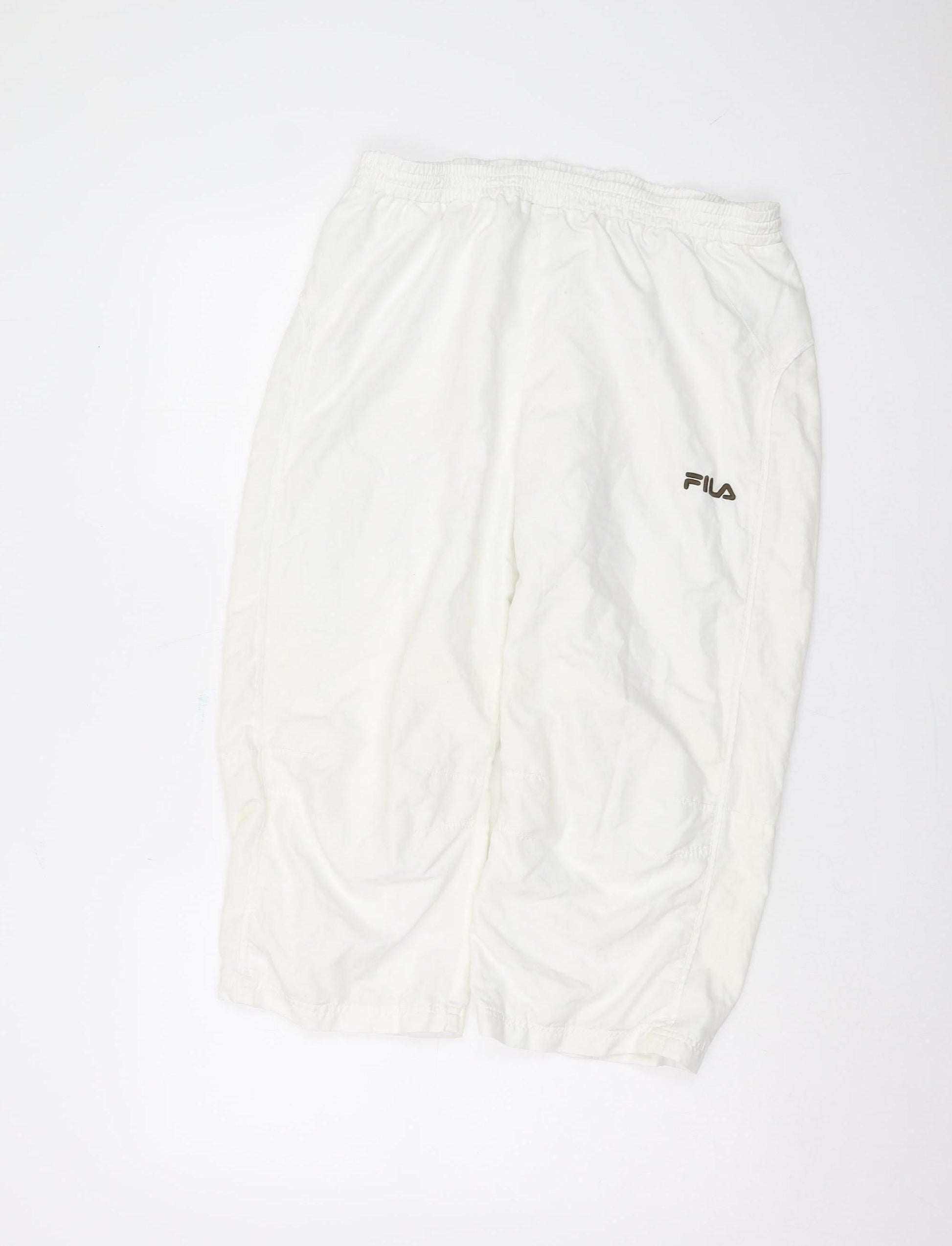 FILA Men's White Track Pants L, Elastic Waist, Relaxed Fit
