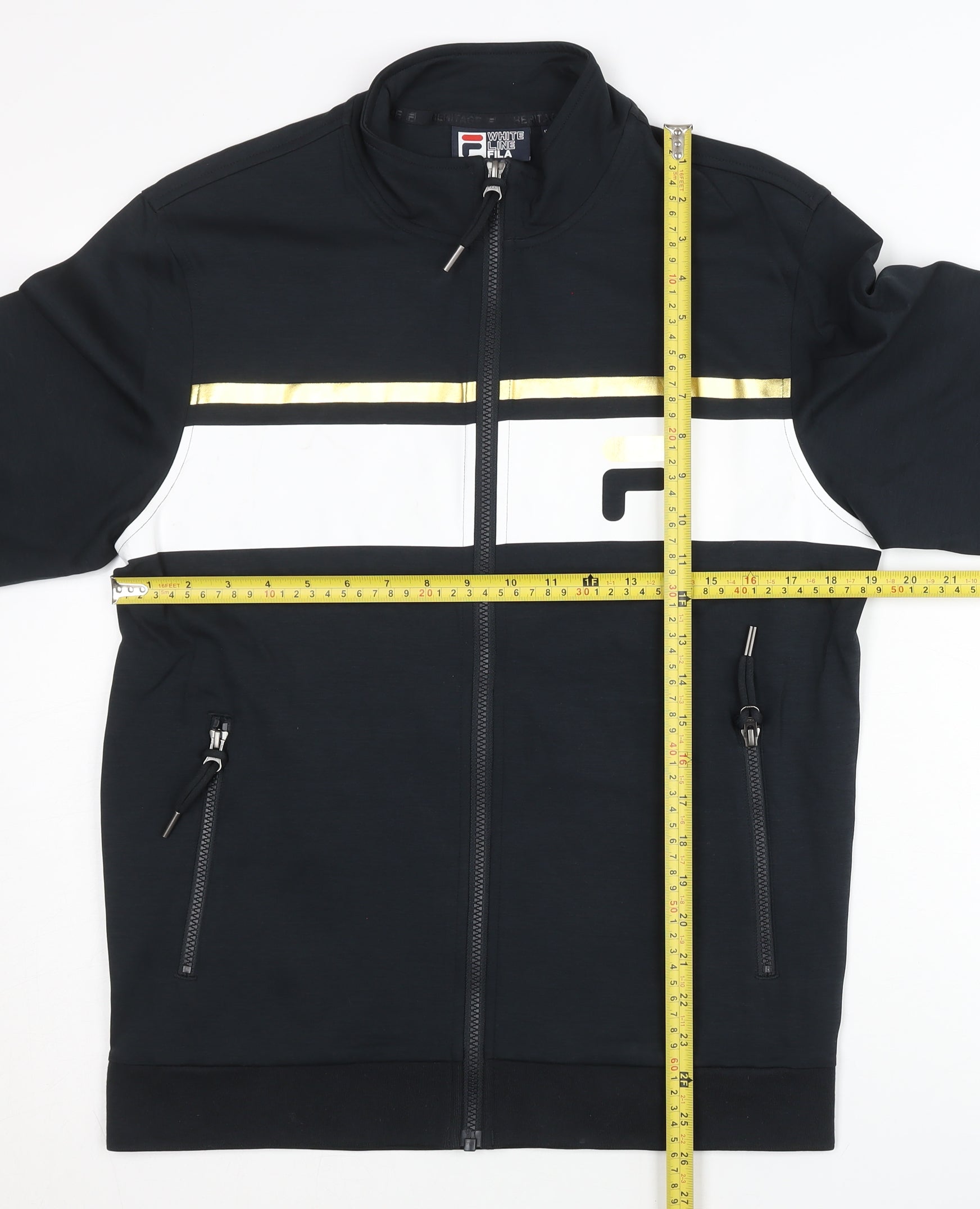 Fila White Line Men's Black M Track Jacket Gold White Stripe Full Zip