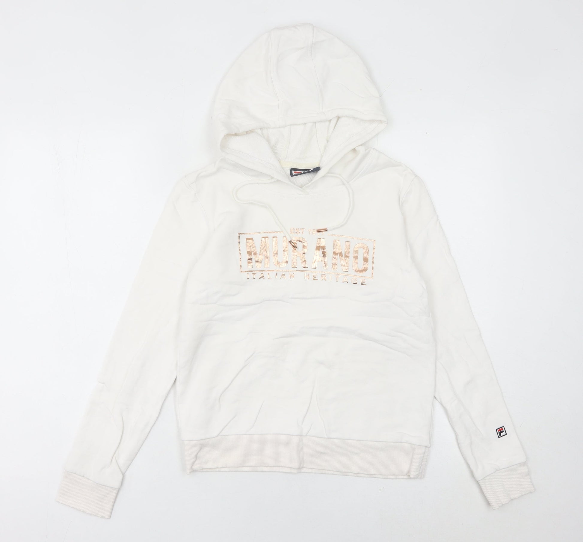 Fila White Line Womens White Hoodie UK 8 Pullover Logo Detail
