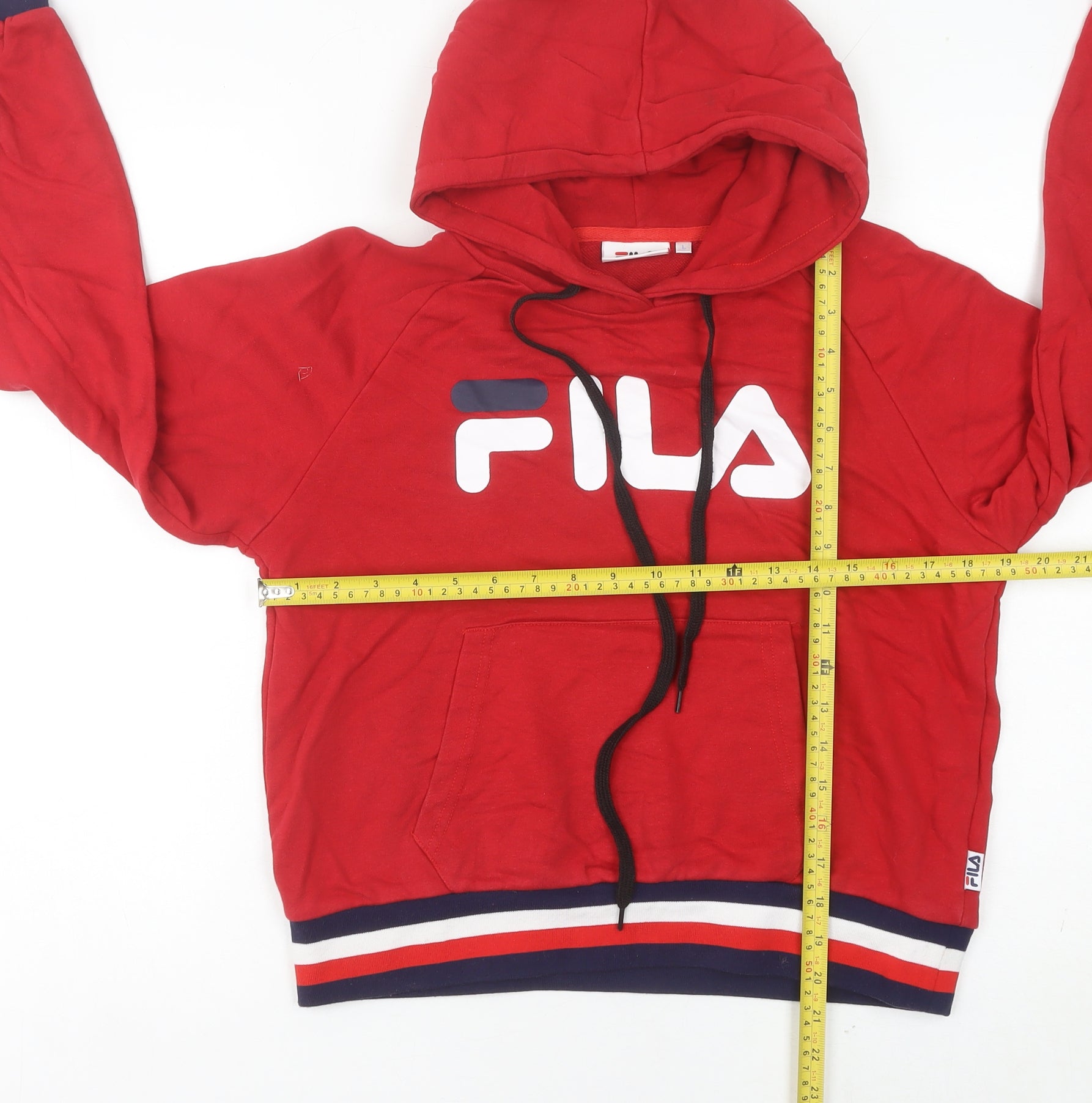 FILA Women Red Hoodie Size 10 Pullover Logo Hooded Sweatshirt