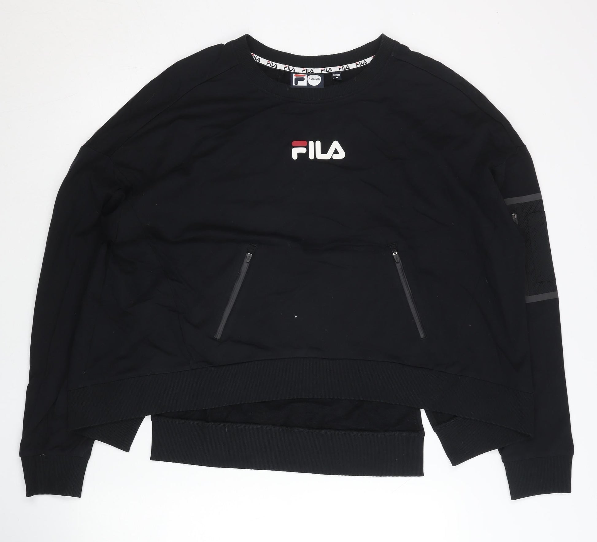 FILA Women’s Black Logo Pullover Sweatshirt Size 8 Regular Fit
