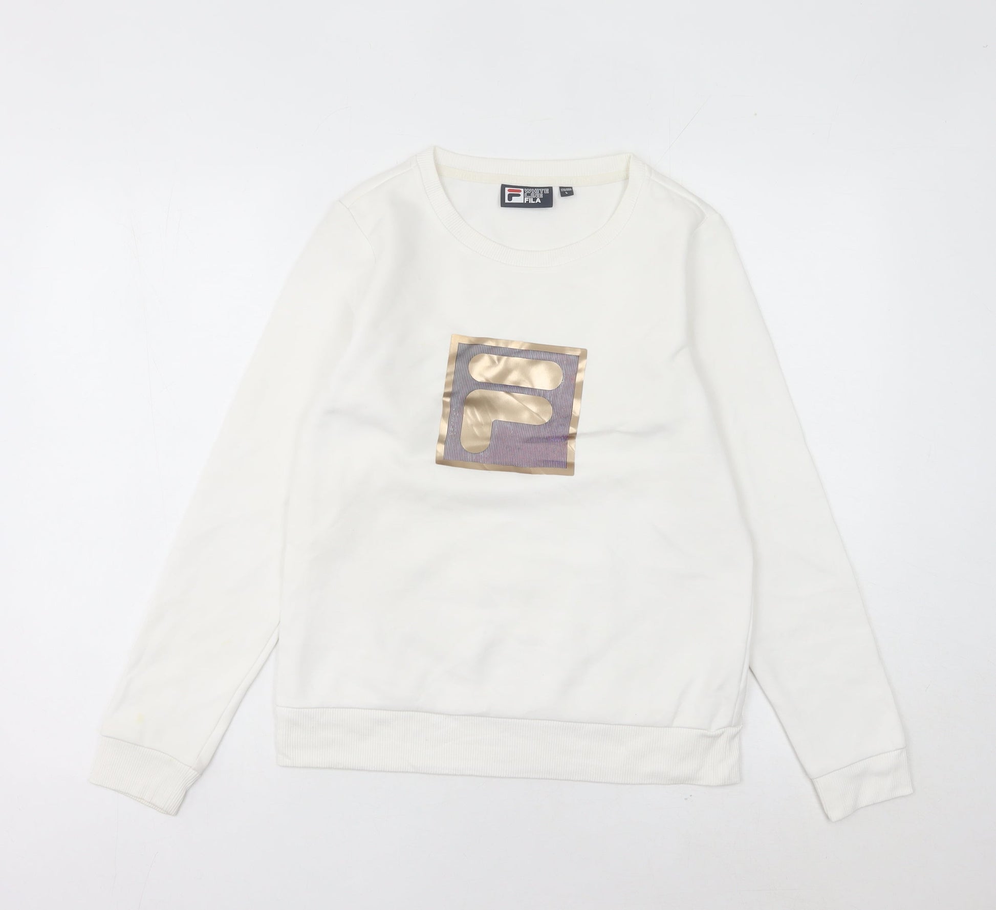 Fila Women’s White Logo Sweatshirt Size 10 UK Pullover Long Sleeve