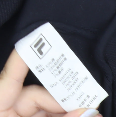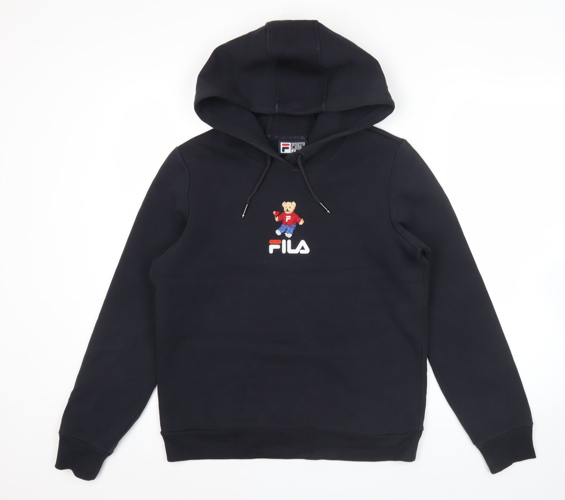 FILA Womens Black Hoodie UK 10 Bear Logo Pullover Cotton Blend