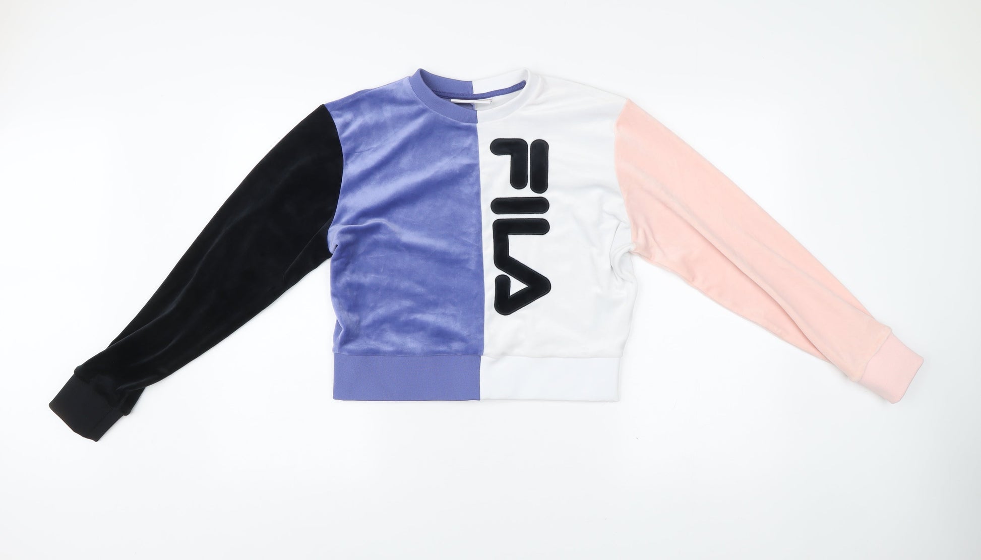 Fila Womens Colourblock Velour Sweatshirt M White Pink Blue Black