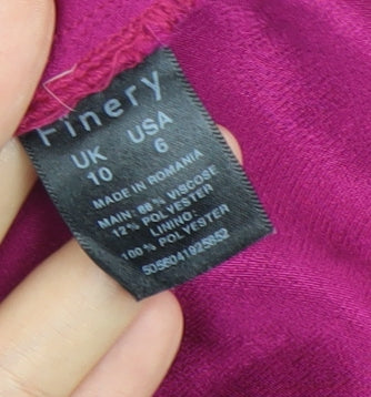 Finery Women Pink Viscose Wrap Dress Size 10 Belted Long Sleeve