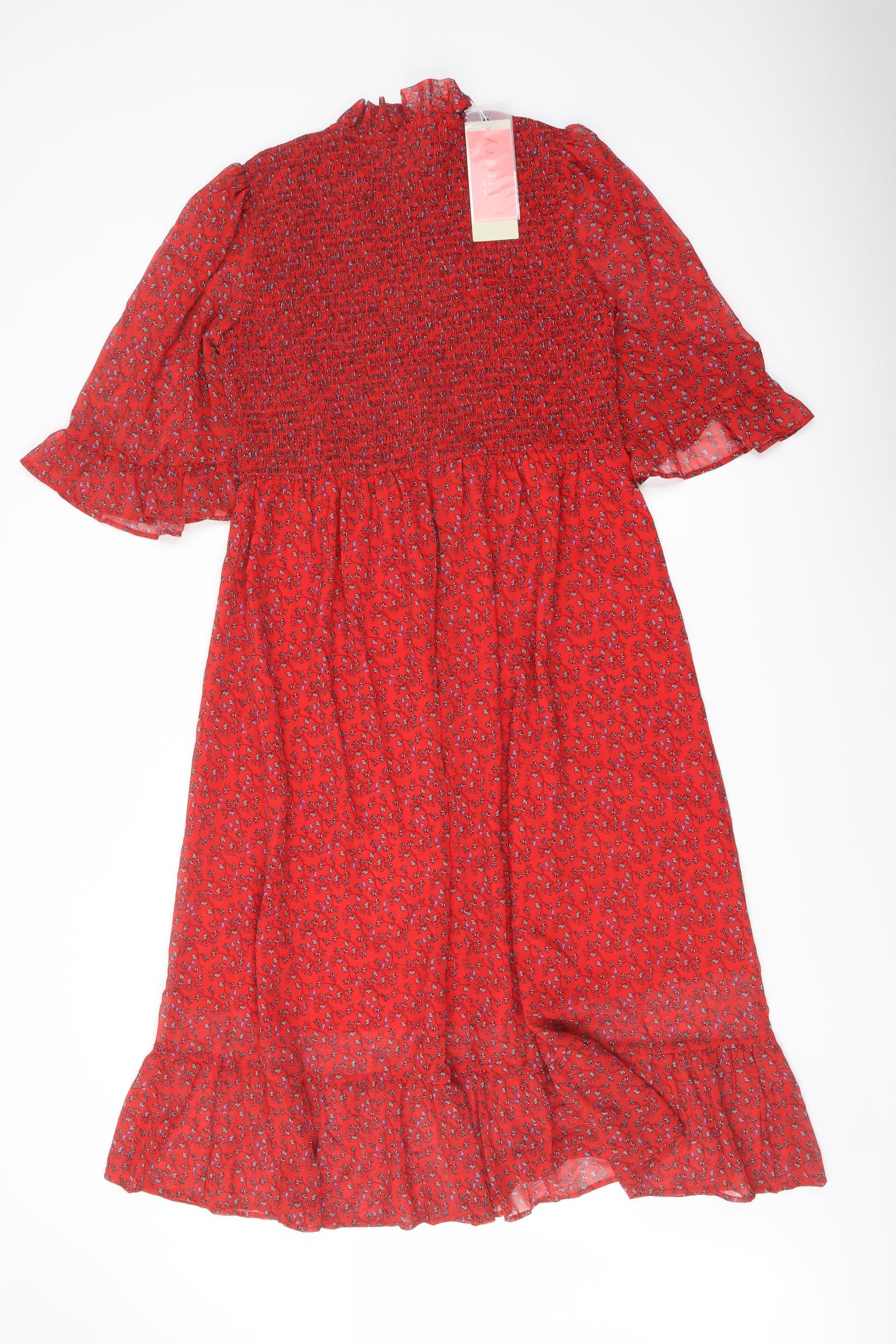 Finery Womens Red Floral Polyester A-Line Size 16 Mock Neck Pullover
