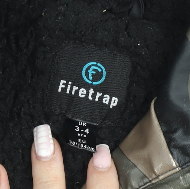 Firetrap Boys Green Camouflage Hooded Waterproof Rain Coat Jacket 3-4 Years