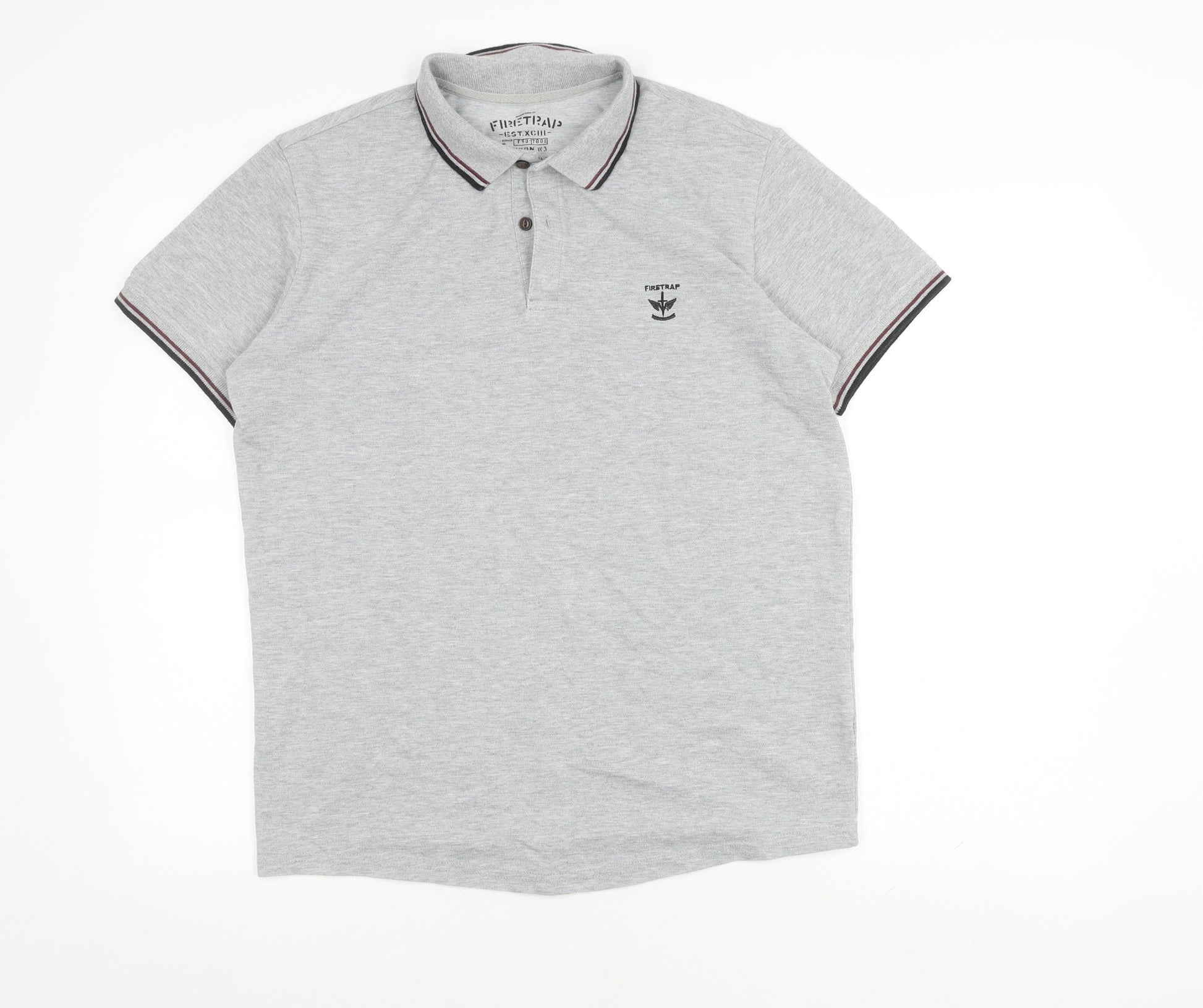 Firetrap Men's Grey Polo Shirt, Medium, Short Sleeve