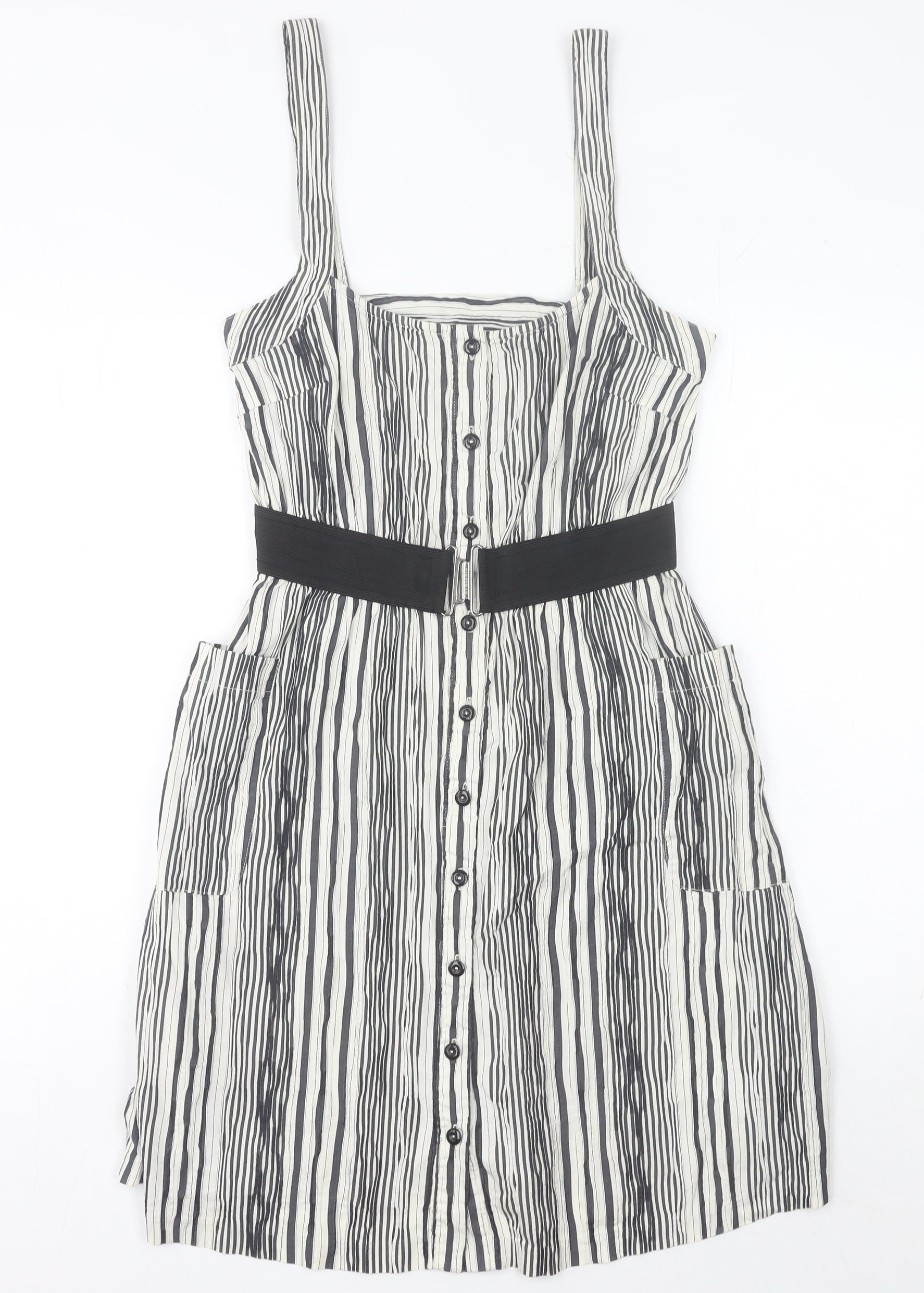 Firetrap Women's Black Striped Short Pinafore Dress Size S Casual Summer