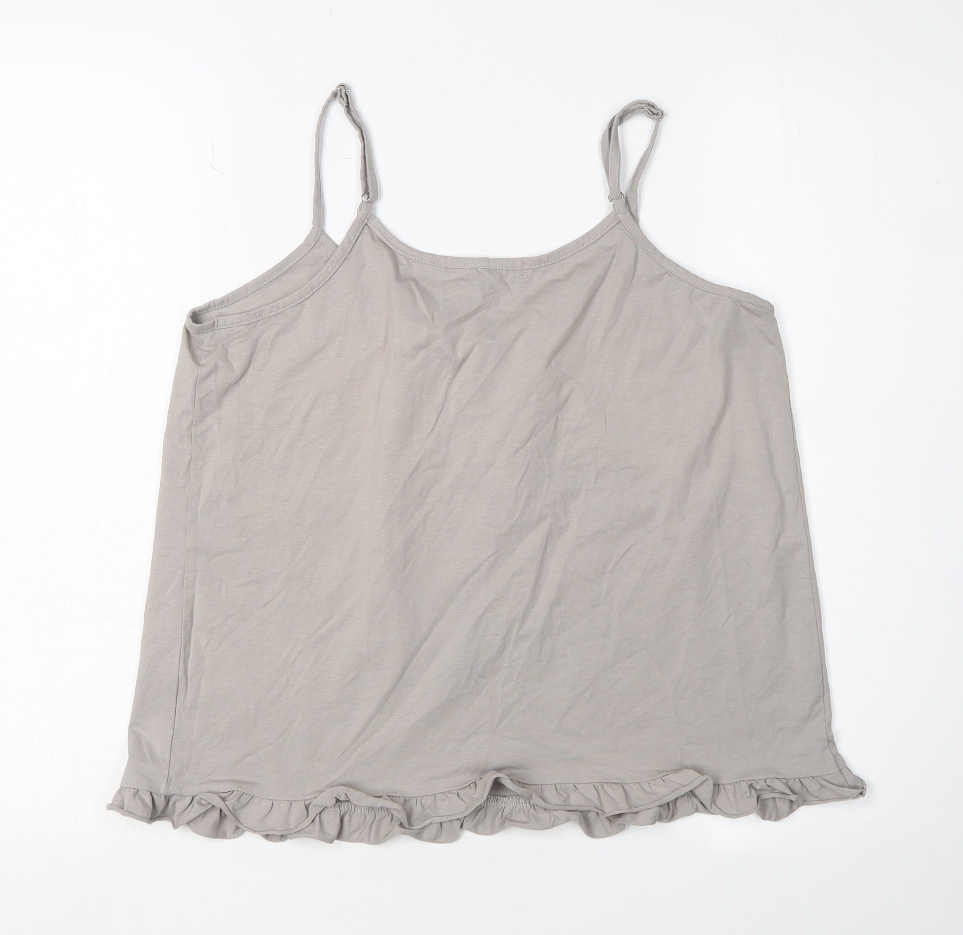 First Avenue Grey Camisole Tank Top, Women M, Ruffle Accents