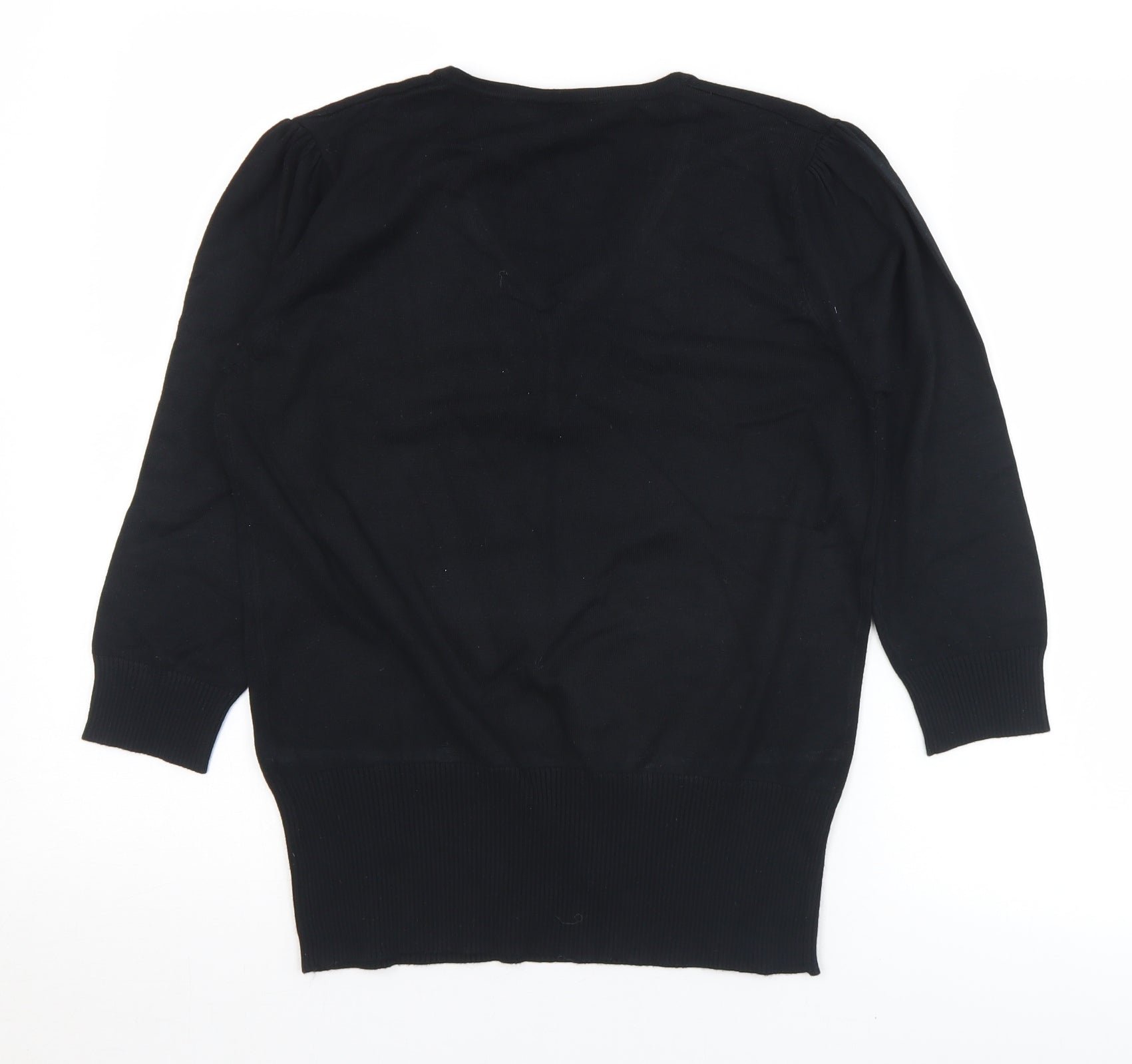 First Avenue Womens Black V-Neck Viscose Pullover Jumper Size M
