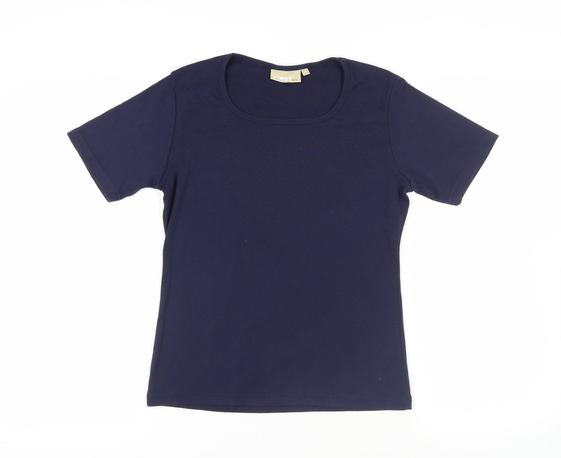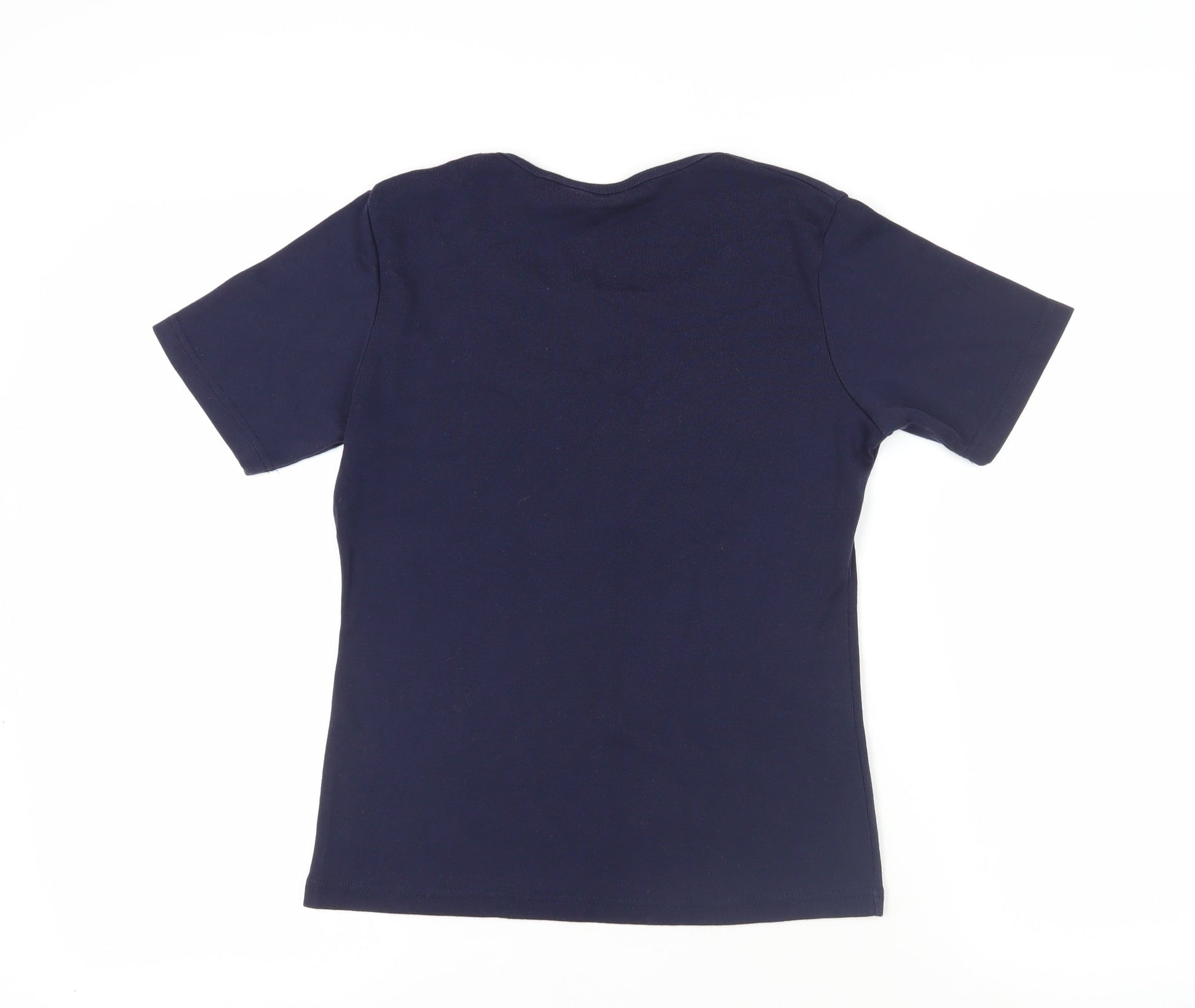 First Avenue Womens Blue Cotton Basic T-Shirt Size M Round Neck